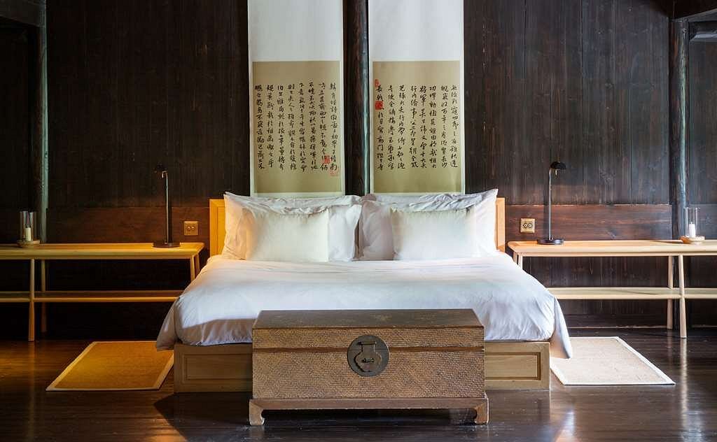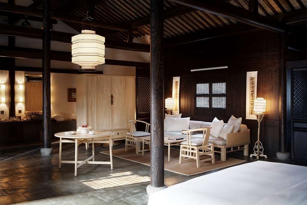 Rooms and suites are designed with simplicity and warmth, echoing the character of traditional village homes. Wooden beams, soft lighting, and natural textures create calm, understated spaces, while private courtyards and terraces offer a quiet place to sit, reflect, or take in the landscape. The experience feels intimate and authentic, with thoughtful touches that honour local heritage without compromising comfort. Wellbeing is woven into the stay. The spa sits among bamboo and whispering trees, offering treatments rooted in traditional Chinese healing. There is a serene pool, a small gym, and spaces for meditation or gentle movement. A boutique offers locally crafted pieces, while children can enjoy age-appropriate activities inspired by nature and village life.