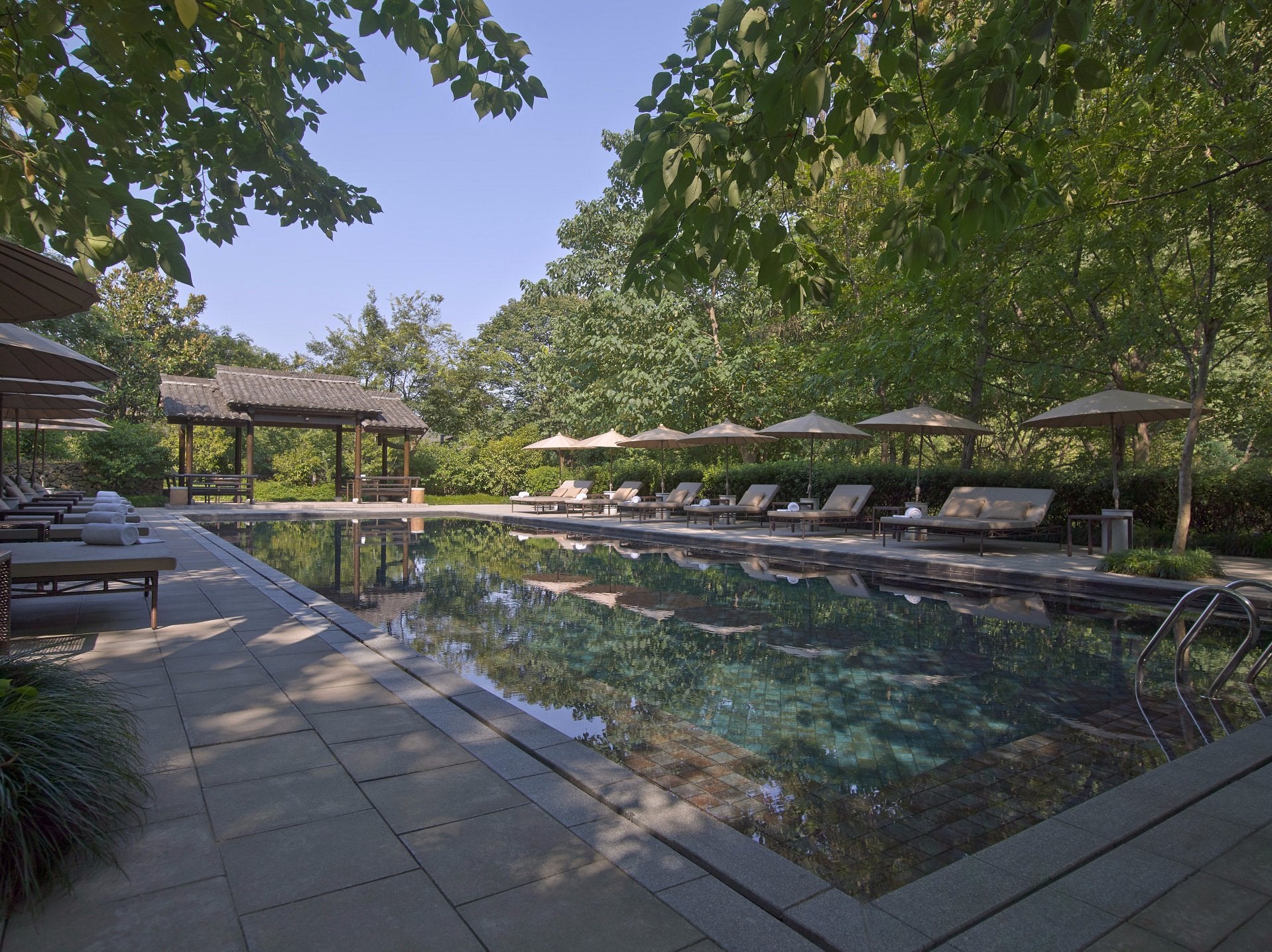 Amanfayun rests along the quiet forested pathways near West Lake, offering a retreat that feels timeless and deeply connected to its surroundings. Set within a restored village, the property invites guests into a world of old stone lanes, tea fields, bamboo groves, and ancient temples. The atmosphere is peaceful and grounding — an escape where the rhythm of daily life slows down and nature becomes part of every moment.