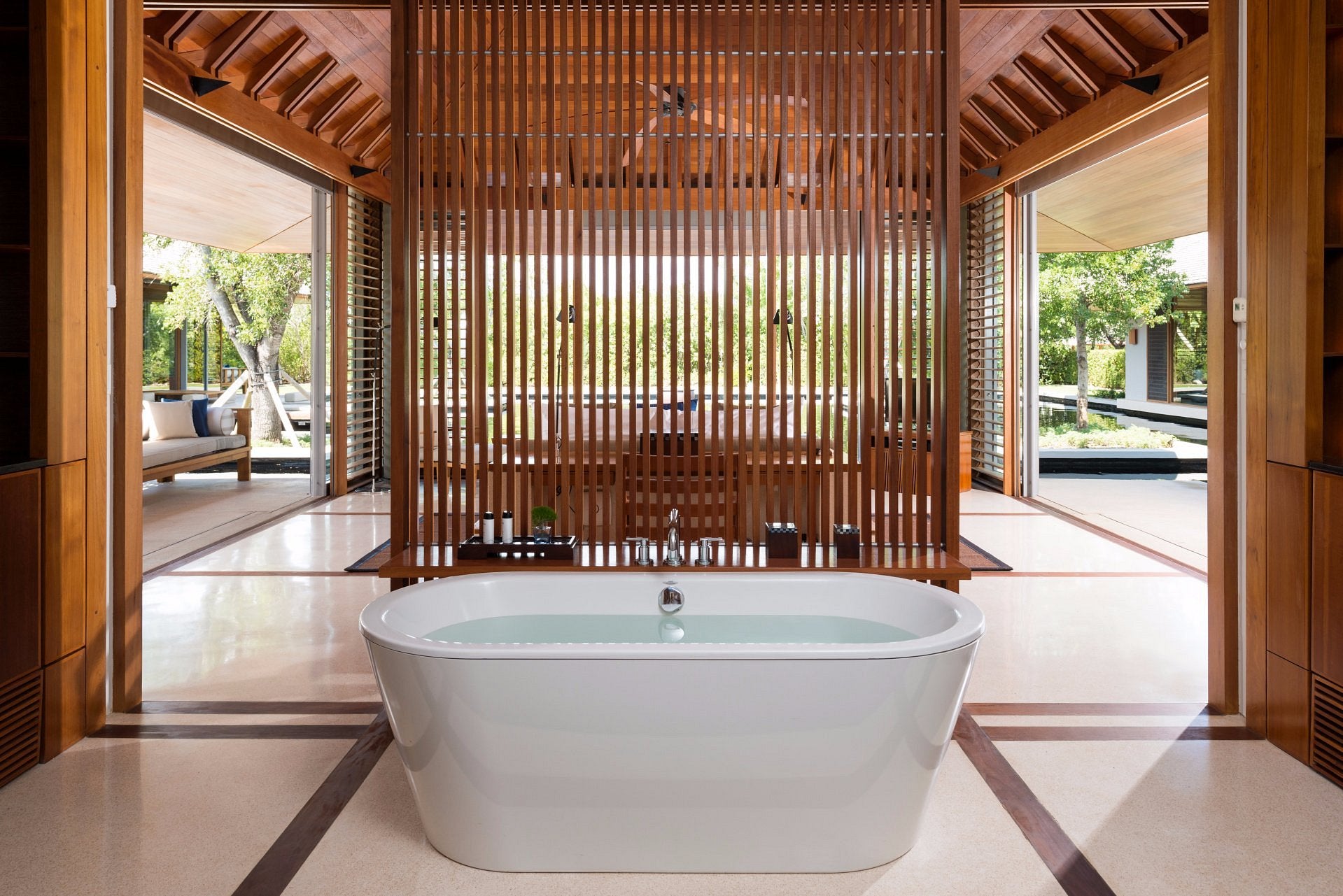 Spacious pavilions and villas are designed for privacy and relaxation, each opening onto terraces or reflecting pools. Interiors are simple yet refined, with warm woods, high ceilings, and natural light filtering through. Every detail—from the breeze through sliding doors to the sound of the sea at night—adds to the feeling of ease and tranquility that defines a stay here.