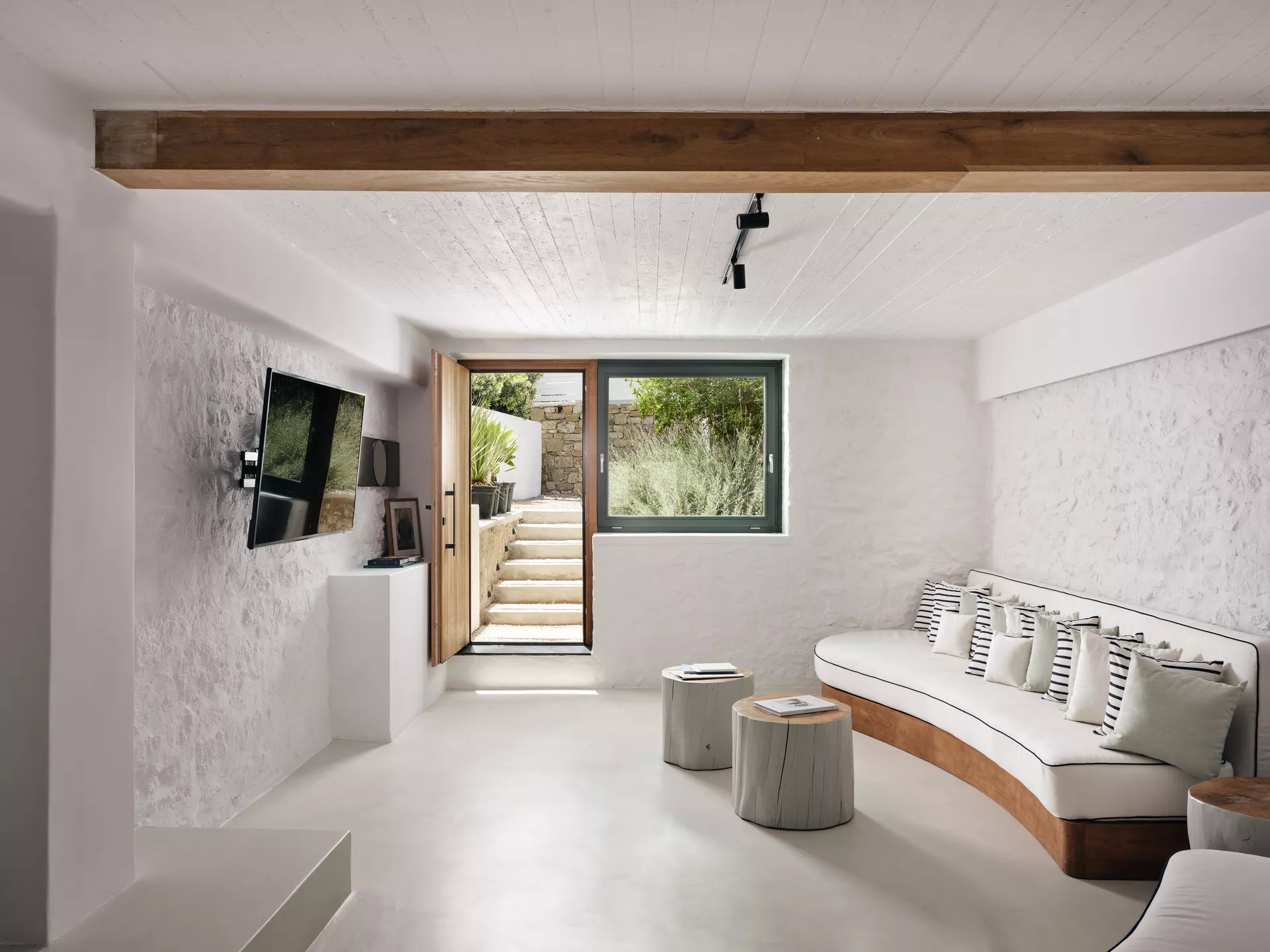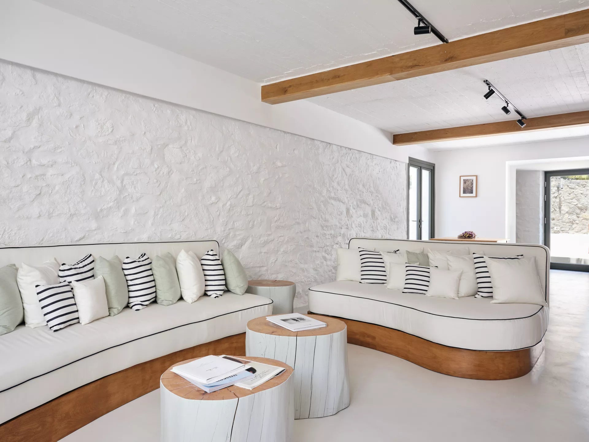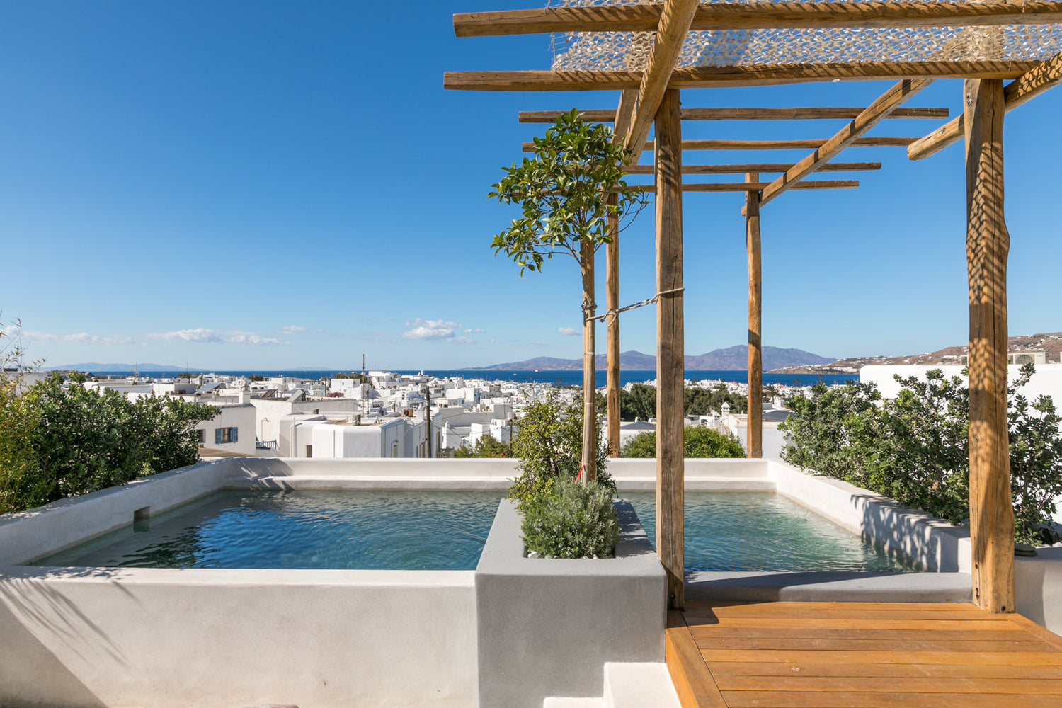 • Expansive terraces and a private pool with breathtaking views of the Aegean Sea and the iconic Mykonos windmills