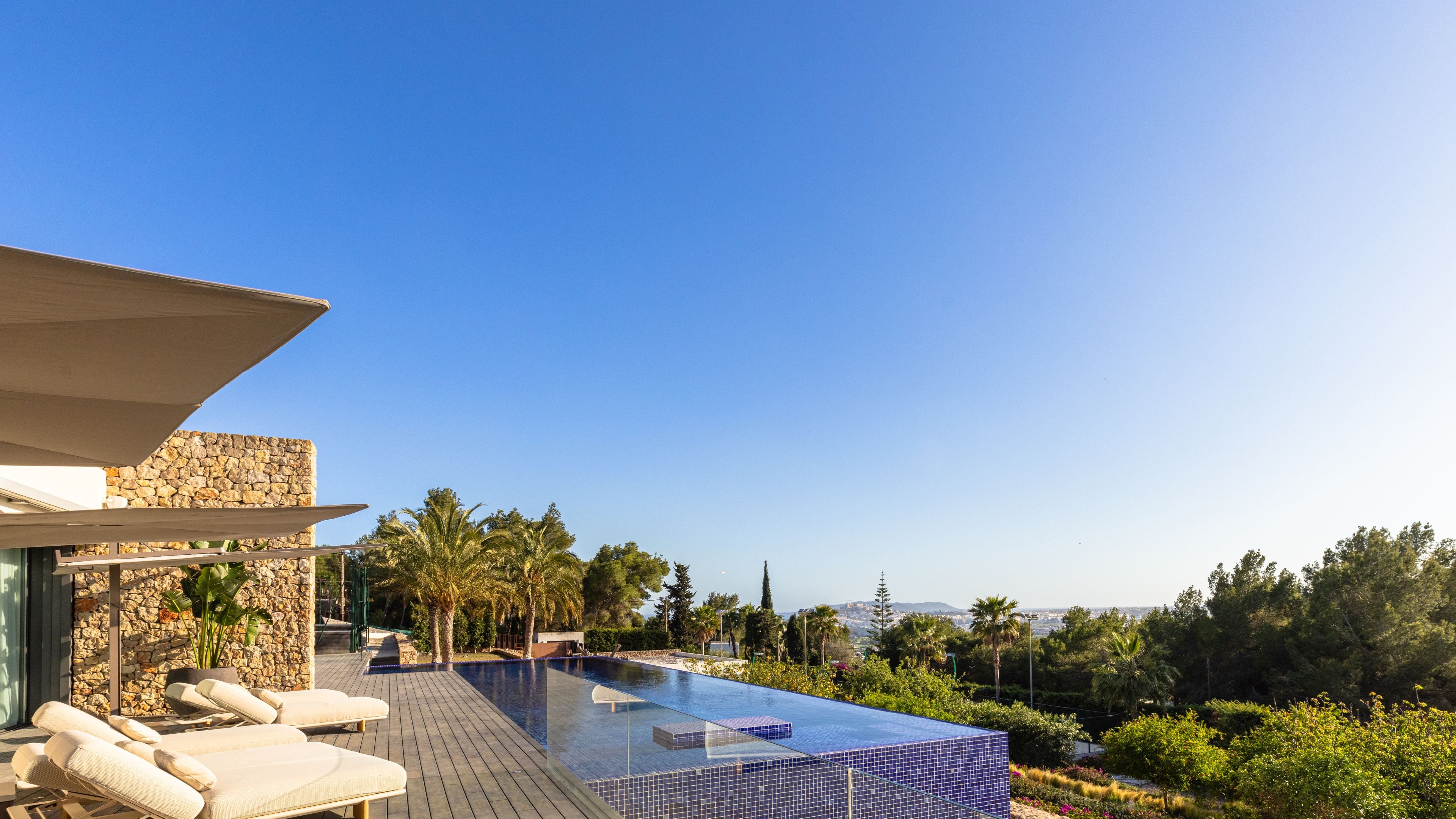 Blue Dream — A Chic Sanctuary in the Heart of Ibiza. Tucked away in vibrant Talamanca, just steps from the beach and minutes from Ibiza Town, Blue Dream is a modern haven where privacy meets effortless style. Designed for both relaxation and celebration, this eight-bedroom villa combines sleek interiors with stunning outdoor spaces, offering breathtaking views and unmatched comfort.