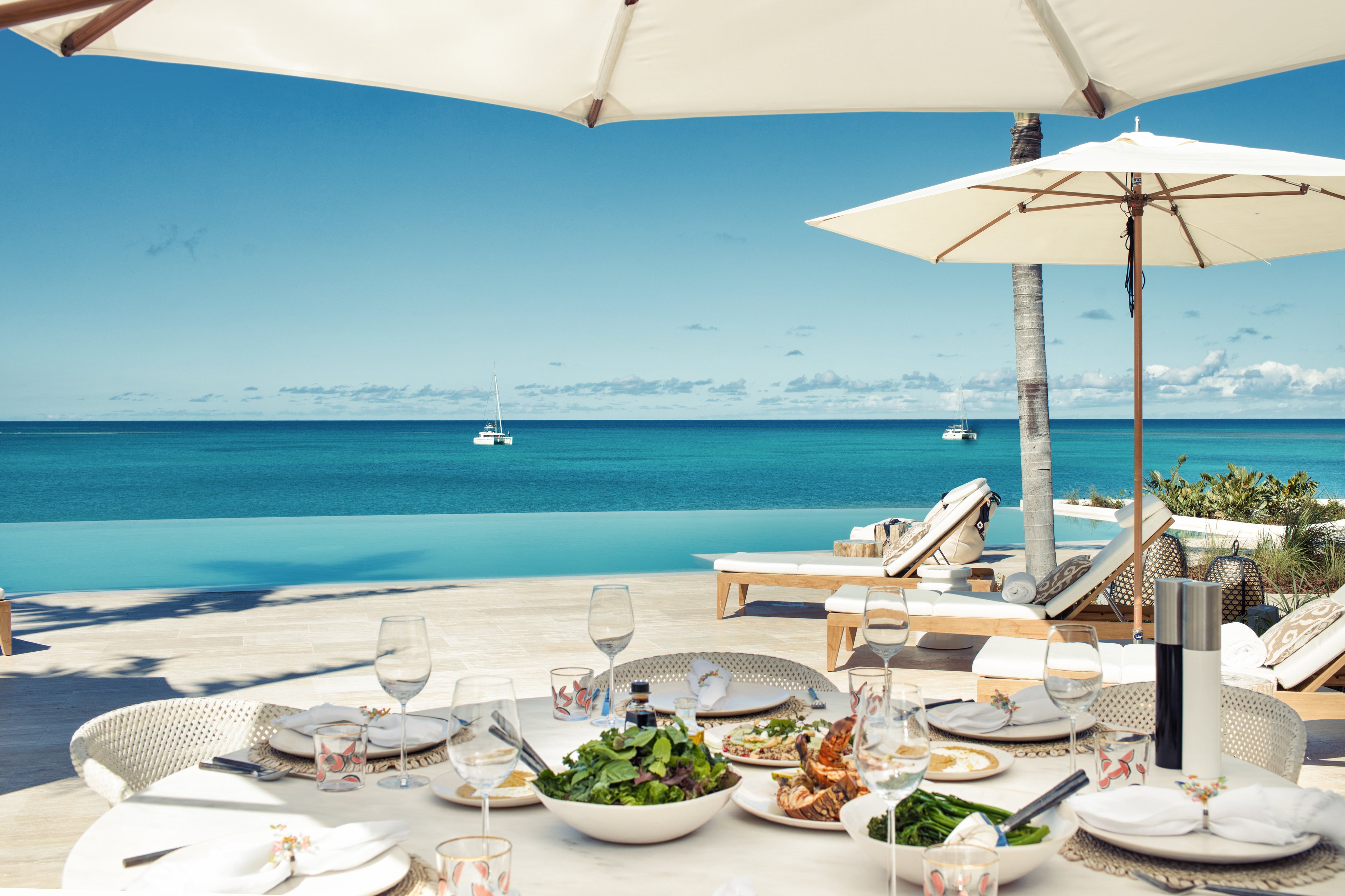 - The open-plan design blends seamlessly with the lush gardens and ocean views