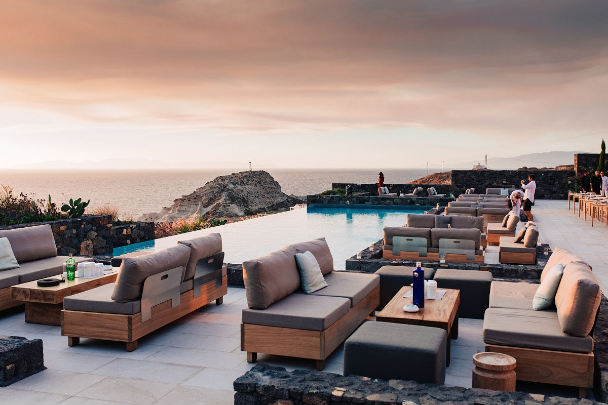 • Omnia Restaurant – Casual yet elegant dining by the pool, featuring modern Greek dishes in a laid-back, open-air setting