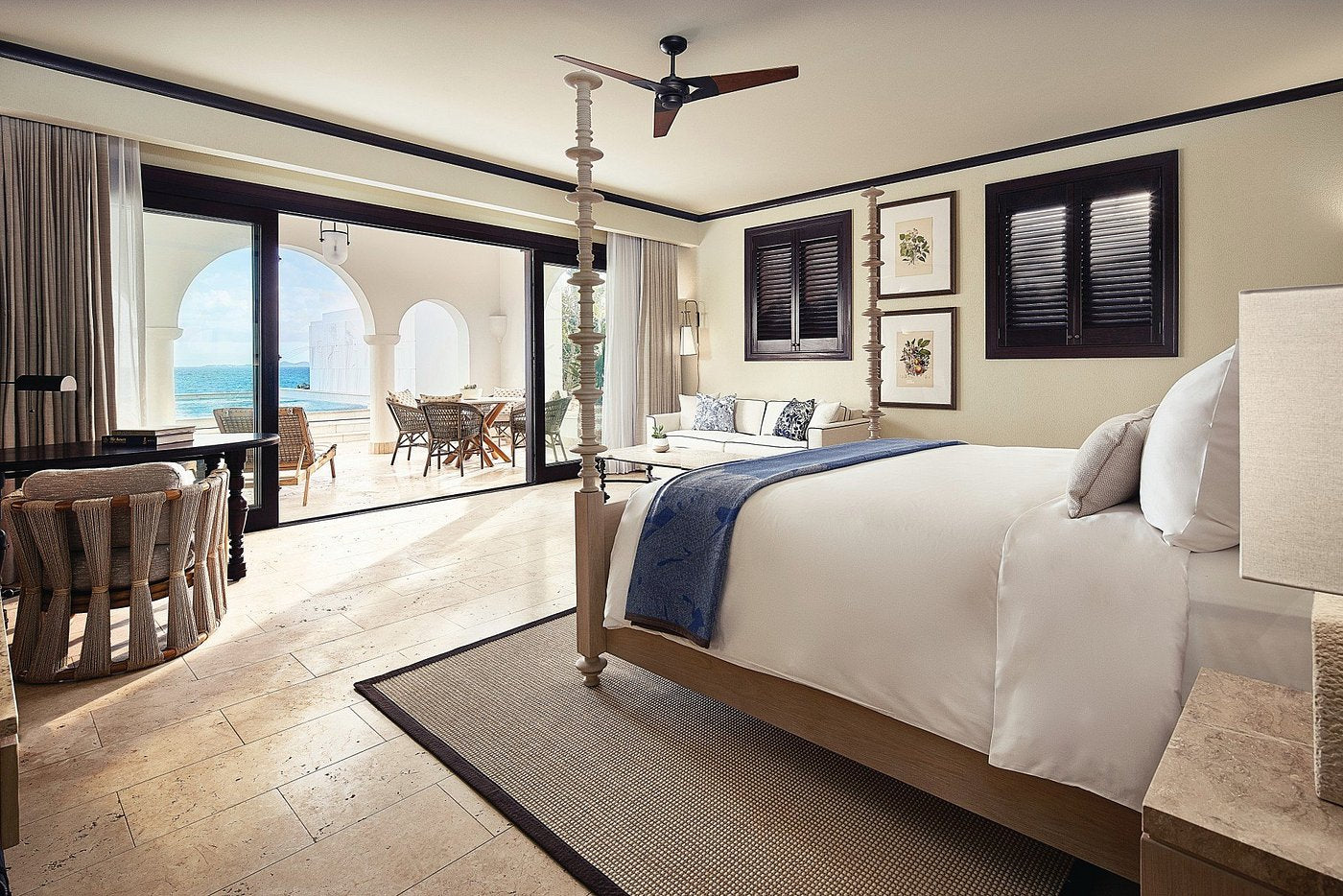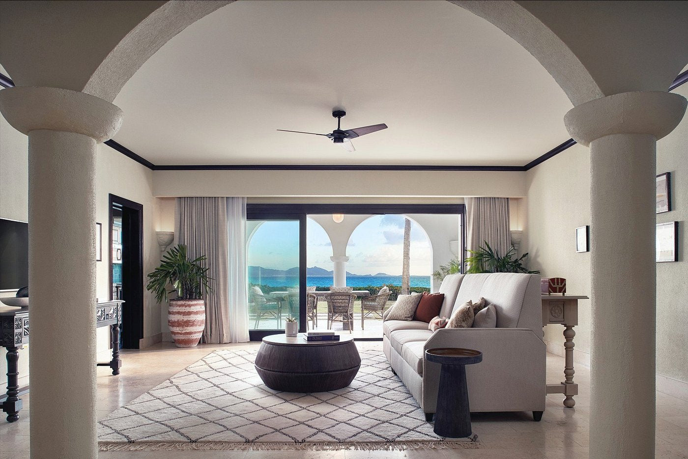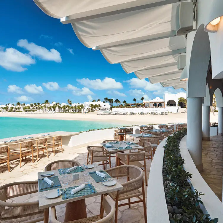 Set along the crescent-shaped sands of Maundays Bay, Cap Juluca is a serene escape where turquoise waters and soft white shores create a sense of quiet beauty. The atmosphere is relaxed yet refined, with architecture that reflects the island’s gentle spirit and Mediterranean charm. Spacious rooms and suites open onto private terraces or patios overlooking the sea, inviting guests to slow down and enjoy the rhythm of the Caribbean. Interiors are airy and elegant, with handcrafted details and calming tones that mirror the surrounding landscape.