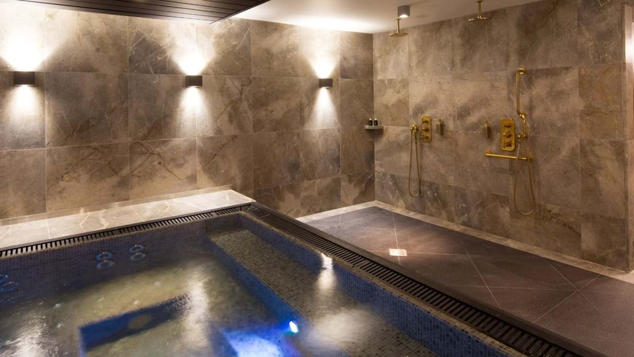 • Sauna and whirlpool bath (and optional steam shower) within the chalet
