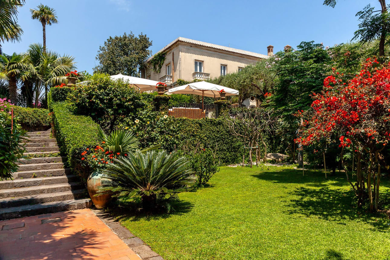Perched between the shimmering Ionian Sea and the majestic slopes of Mount Etna, this exquisite villa offers the ultimate combination of historic charm, lush gardens, and full-service luxury.
