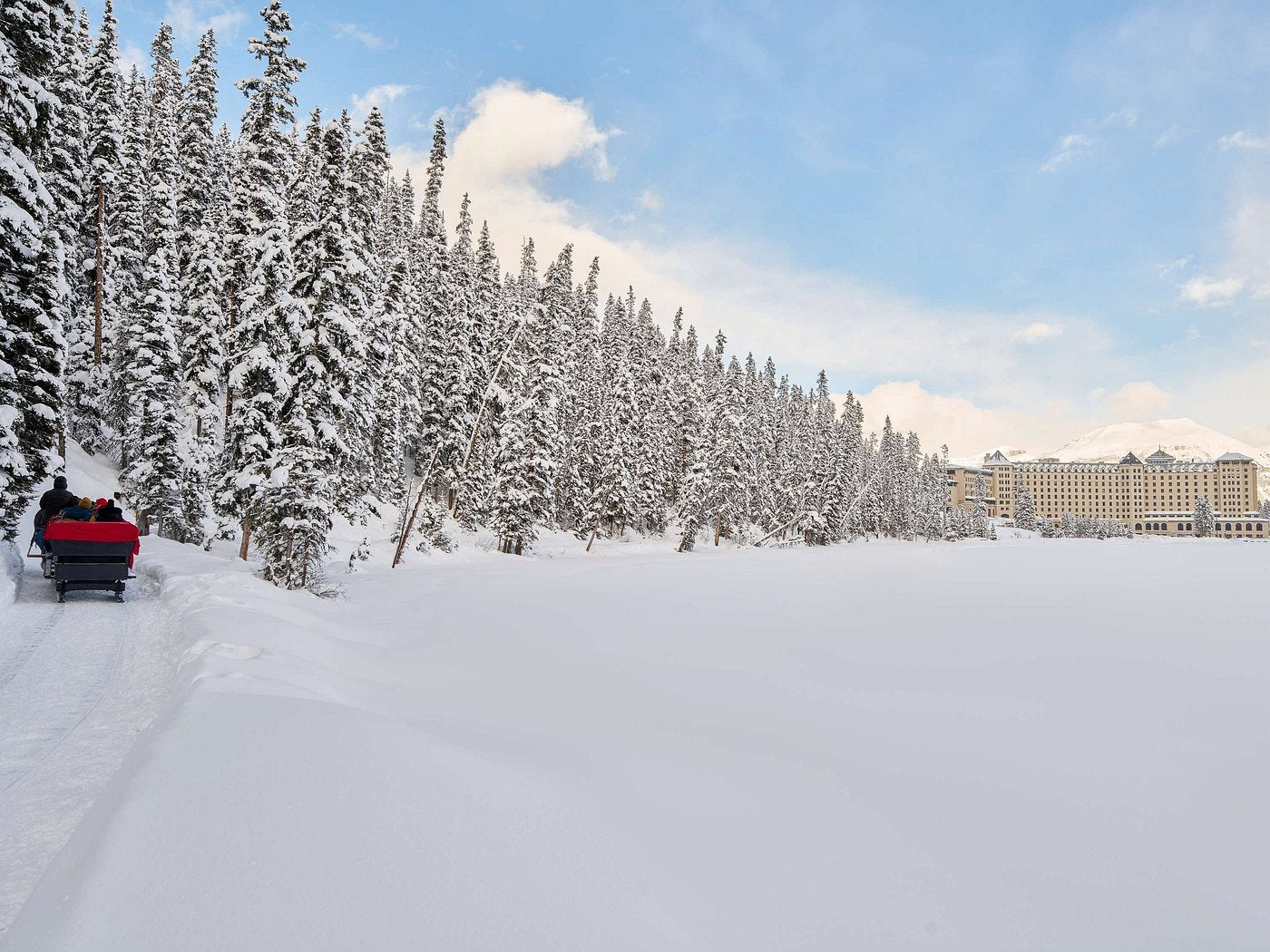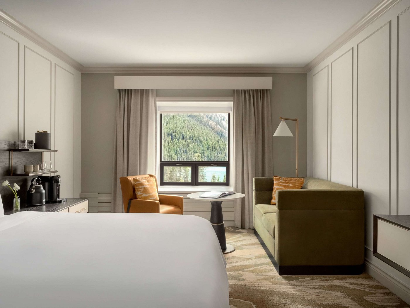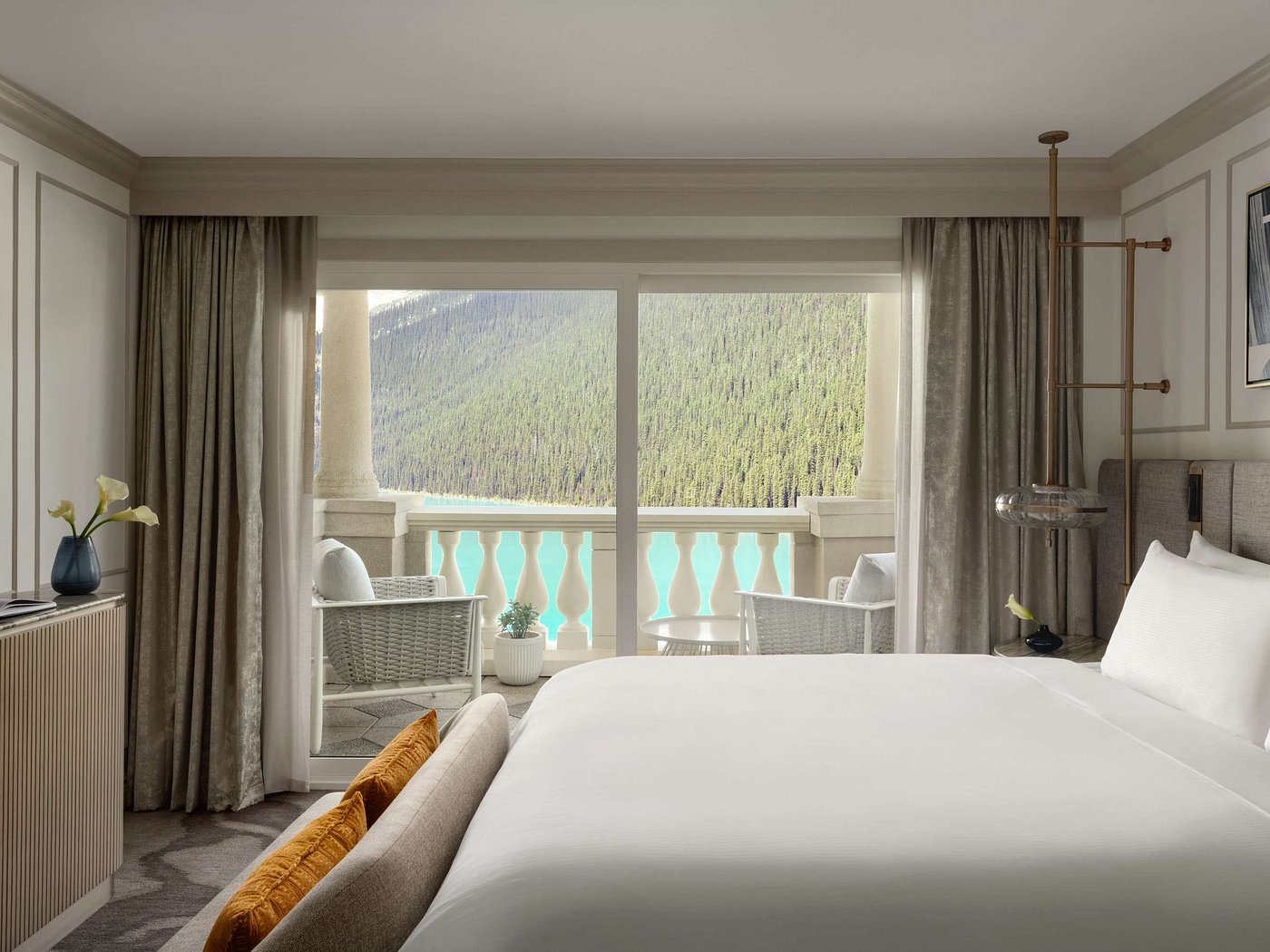Fairmont Château Lake Louise rests on the edge of the turquoise Lake Louise, surrounded by towering mountains and the Victoria Glacier. The setting feels peaceful and grand, offering a true escape into nature. With its historic château-style architecture and alpine character, the hotel carries a timeless charm closely tied to the region’s mountaineering heritage.