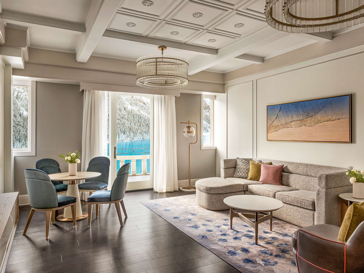Rooms and suites are spacious and comfortable, many with sweeping views of the lake or glacier. Interiors are warm, with classic alpine décor, large windows, and thoughtful details that create a cosy and inviting atmosphere. It’s a place designed for calm moments, whether after a day outdoors or while simply enjoying the scenery.