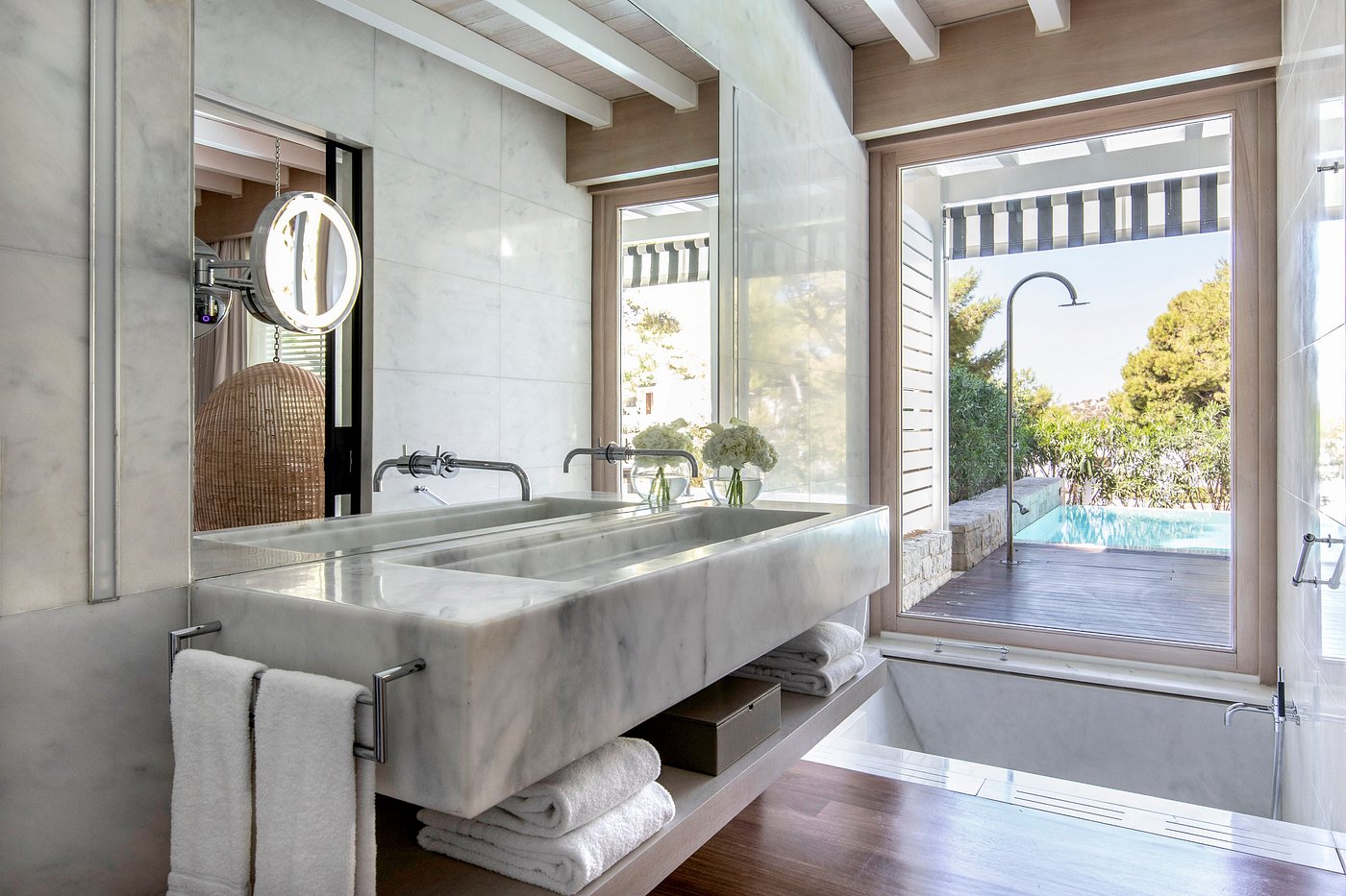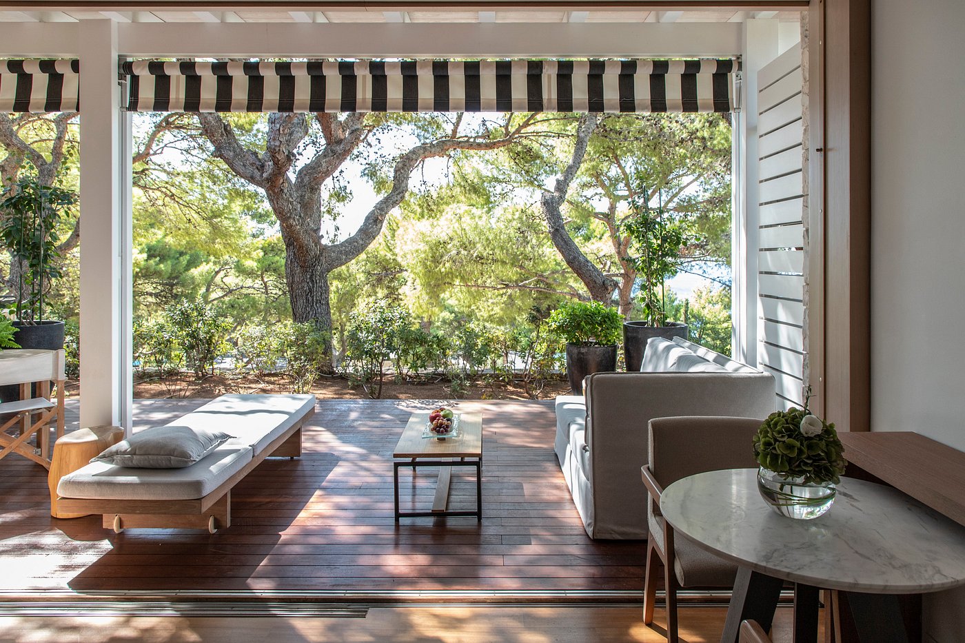Set along the peaceful Athens Riviera, Four Seasons Astir Palace Hotel Athens offers a calm coastal escape just a short drive from the city. Surrounded by pine trees and views of the Aegean Sea, the property feels spacious, breezy, and elegantly understated. Its three distinct settings — Arion, Nafsika, and the Bungalows — each offer their own mood, from refined and quiet to lively and contemporary.