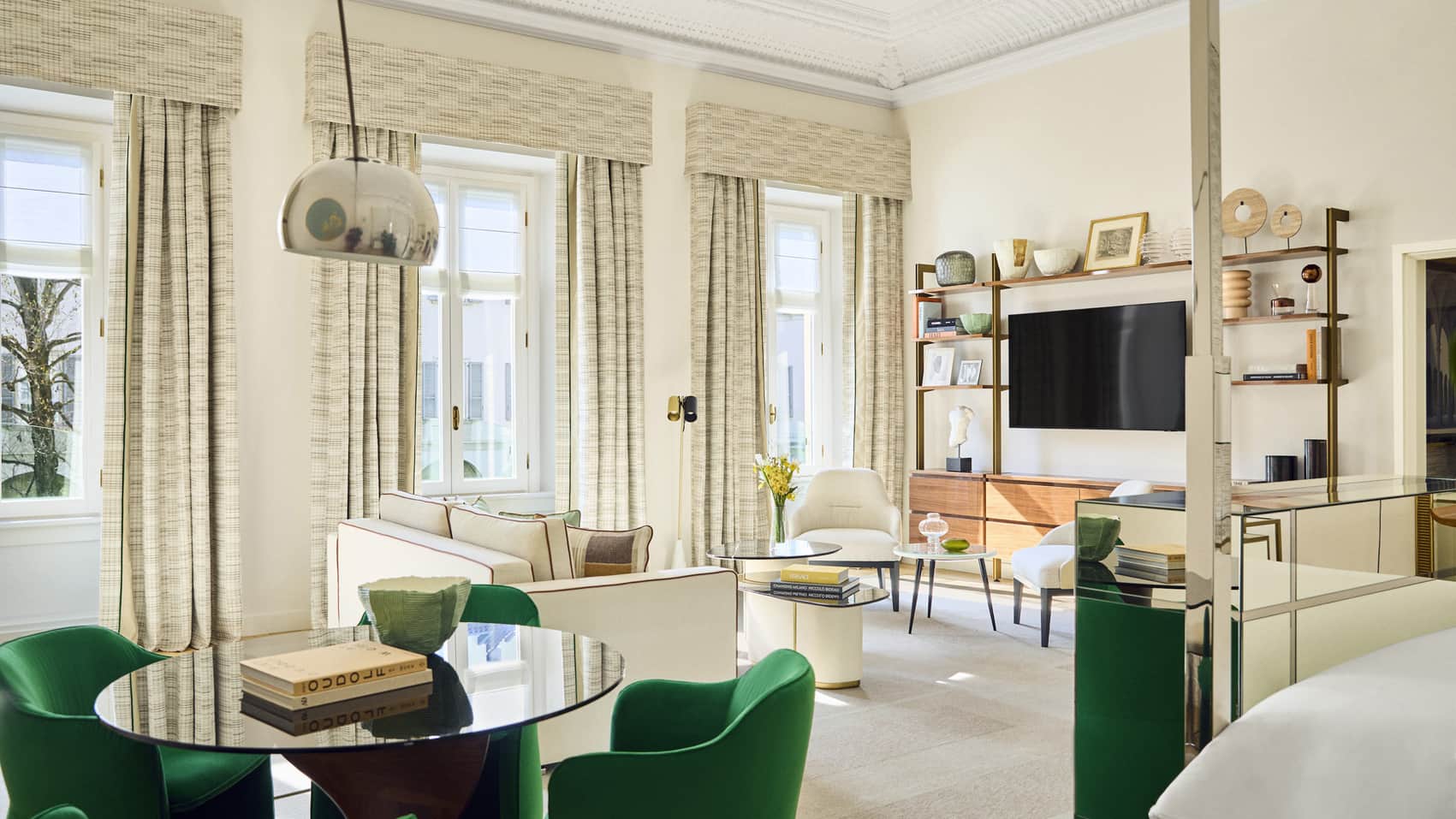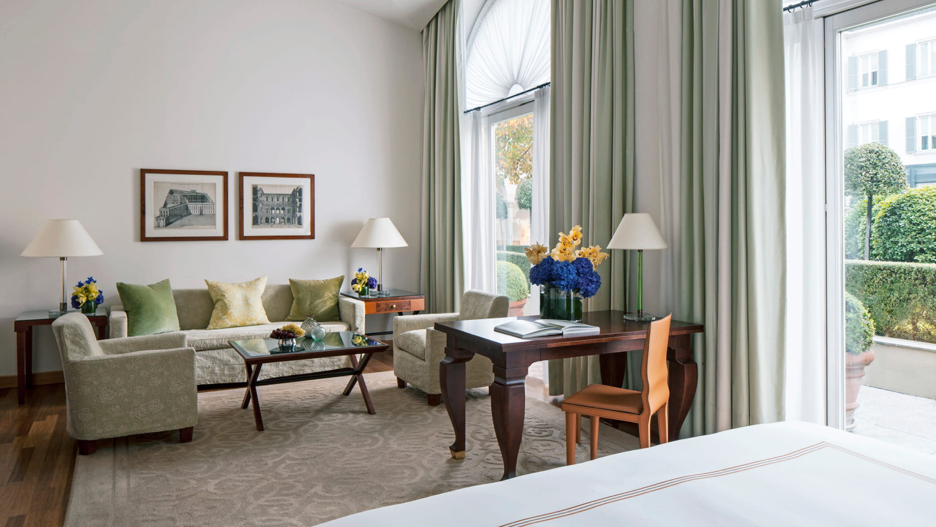 The hotel features a variety of rooms and suites, each designed with understated elegance and modern comfort. Many offer views of the garden or the charming streets of Milan, with some including private terraces and spacious living areas. Historic details and contemporary touches create a warm and refined atmosphere throughout. The amenities onsite include a full-service spa with treatment rooms and an indoor pool, a gym, a hair salon, and family-friendly activities for children. You can also enjoy relaxing in the lush private garden or sipping an aperitivo at the stylish bar.