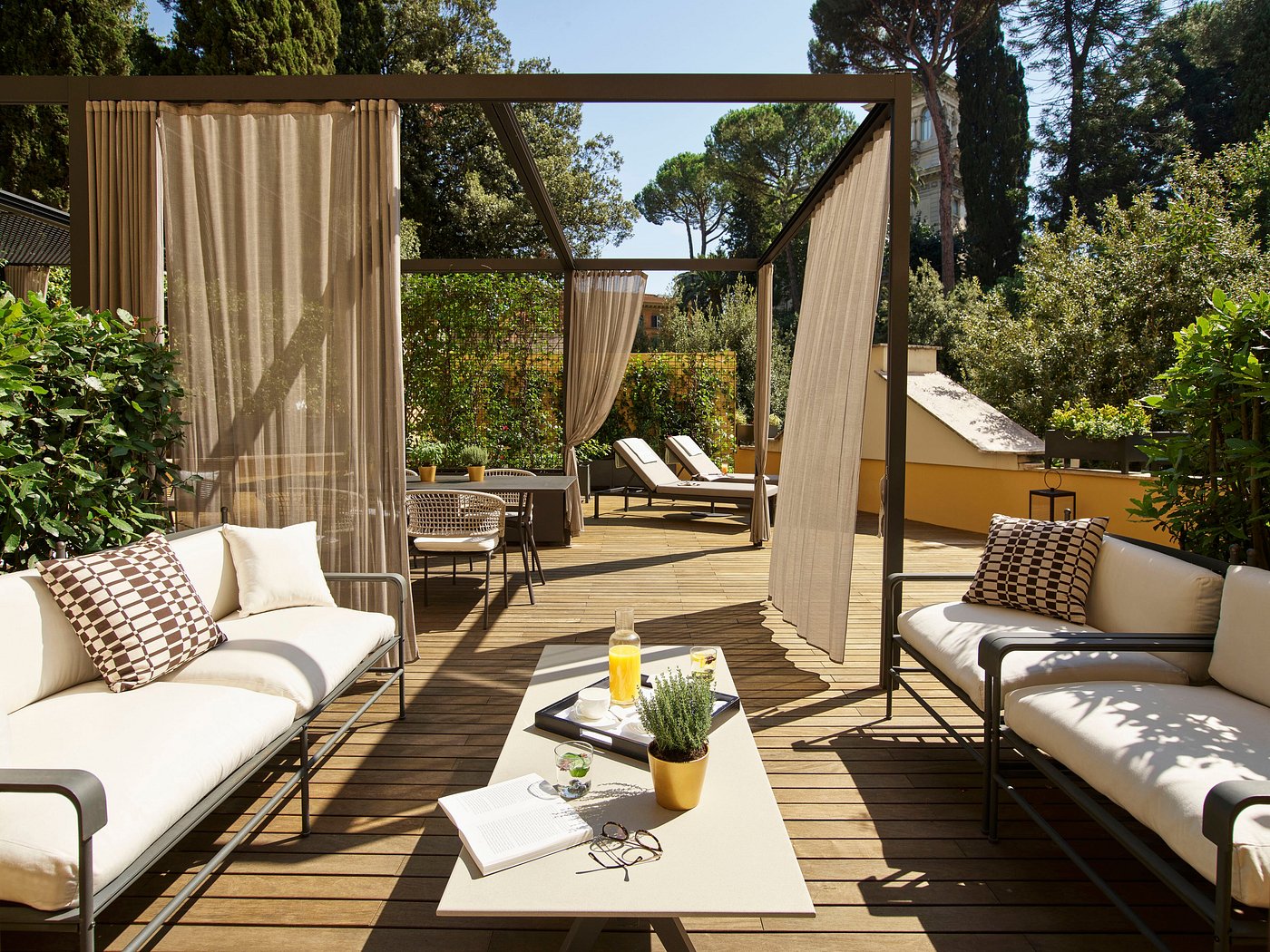 Rooms and suites are bright and elegant, many featuring panoramic windows that frame the city or the gardens below. Marble bathrooms, walk-in showers, and carefully chosen materials reflect the calm, timeless style the hotel is known for. Staying at Hotel Eden is about comfort, good food, and a slower Roman rhythm. The Eden Spa provides a quiet environment for wellbeing, offering tailored treatments, relaxation areas, and a small but fully equipped fitness room for gentle exercise. A boutique, children’s amenities, and curated activities ensure all guests feel at home.