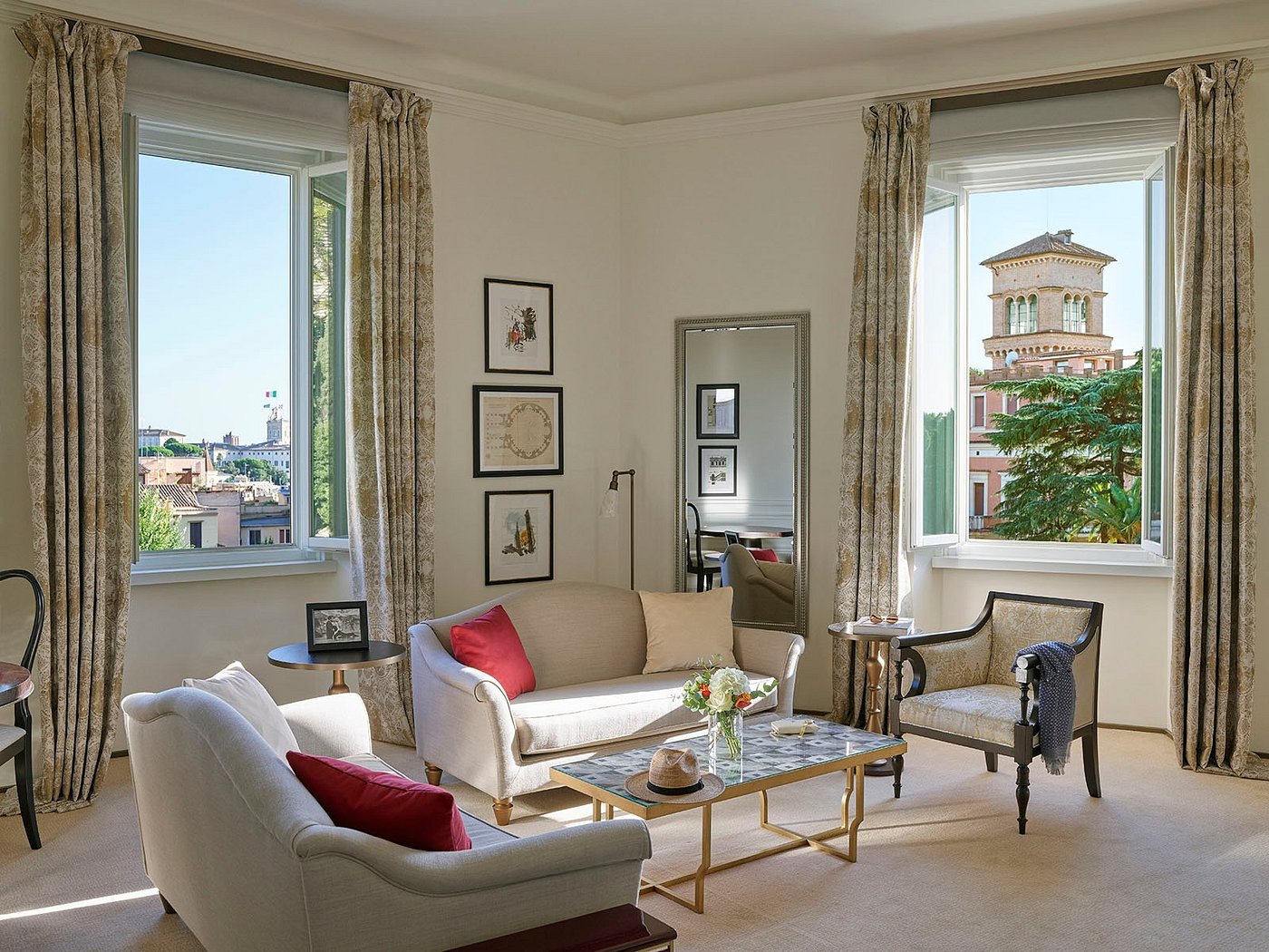 Hotel Eden sits above the historic heart of Rome, just moments from Villa Borghese, offering a quiet hideaway with sweeping city views. Its hillside location gives the property a gentle sense of elevation and light, where guests can look out toward ancient rooftops, domes, and the soft Roman skyline. Interiors feel refined yet warm, with Italian craftsmanship, soft tones, and thoughtful details that make each space feel inviting rather than formal.