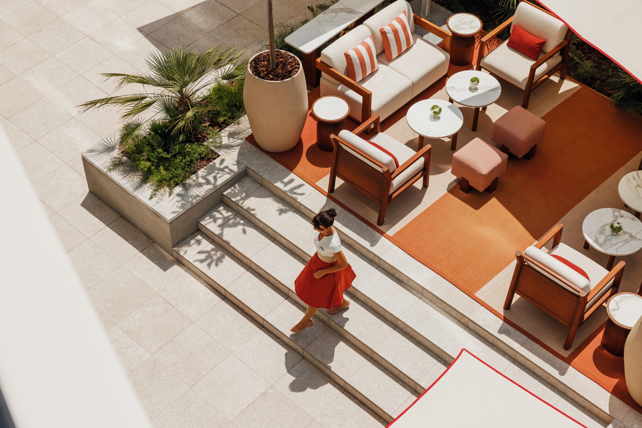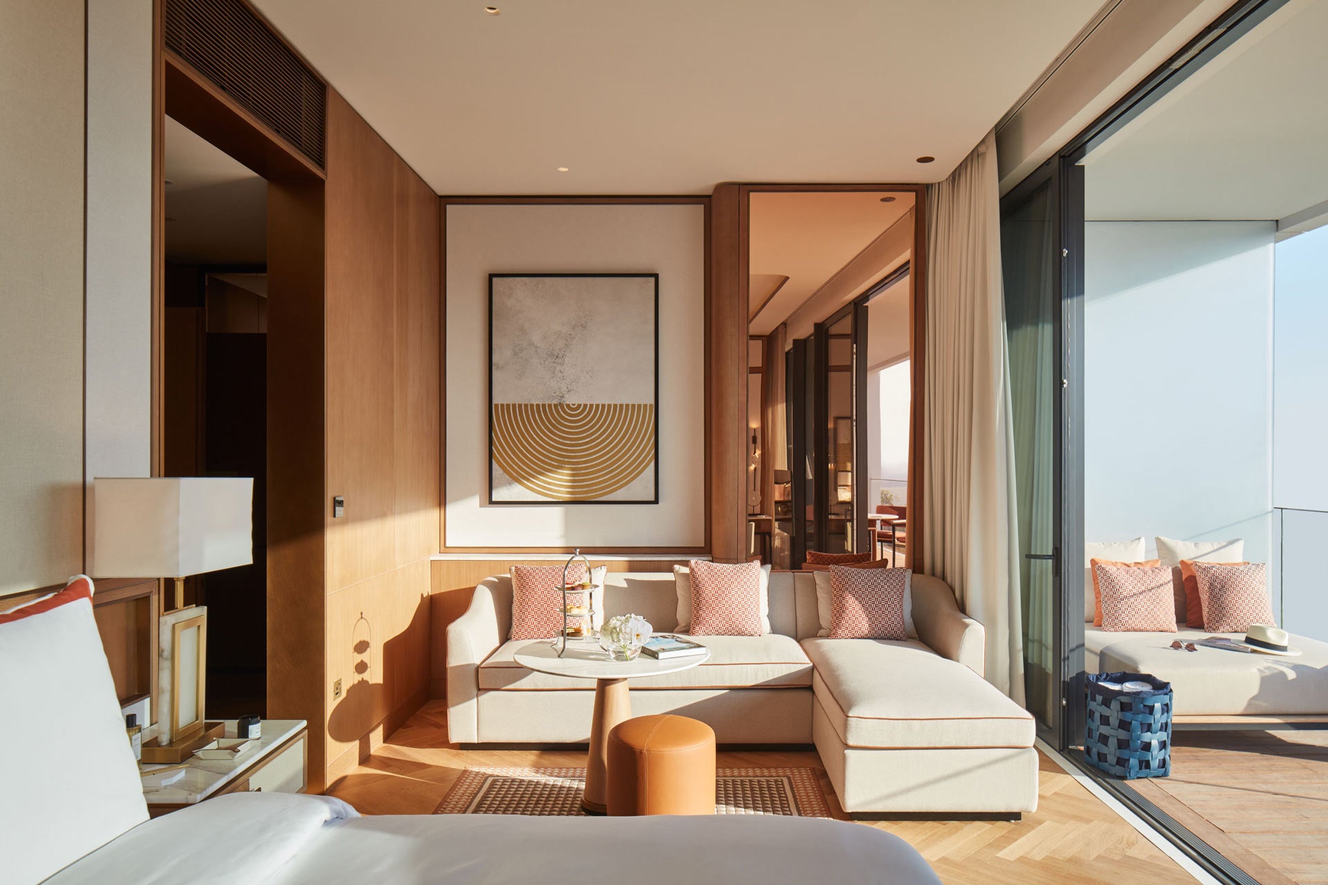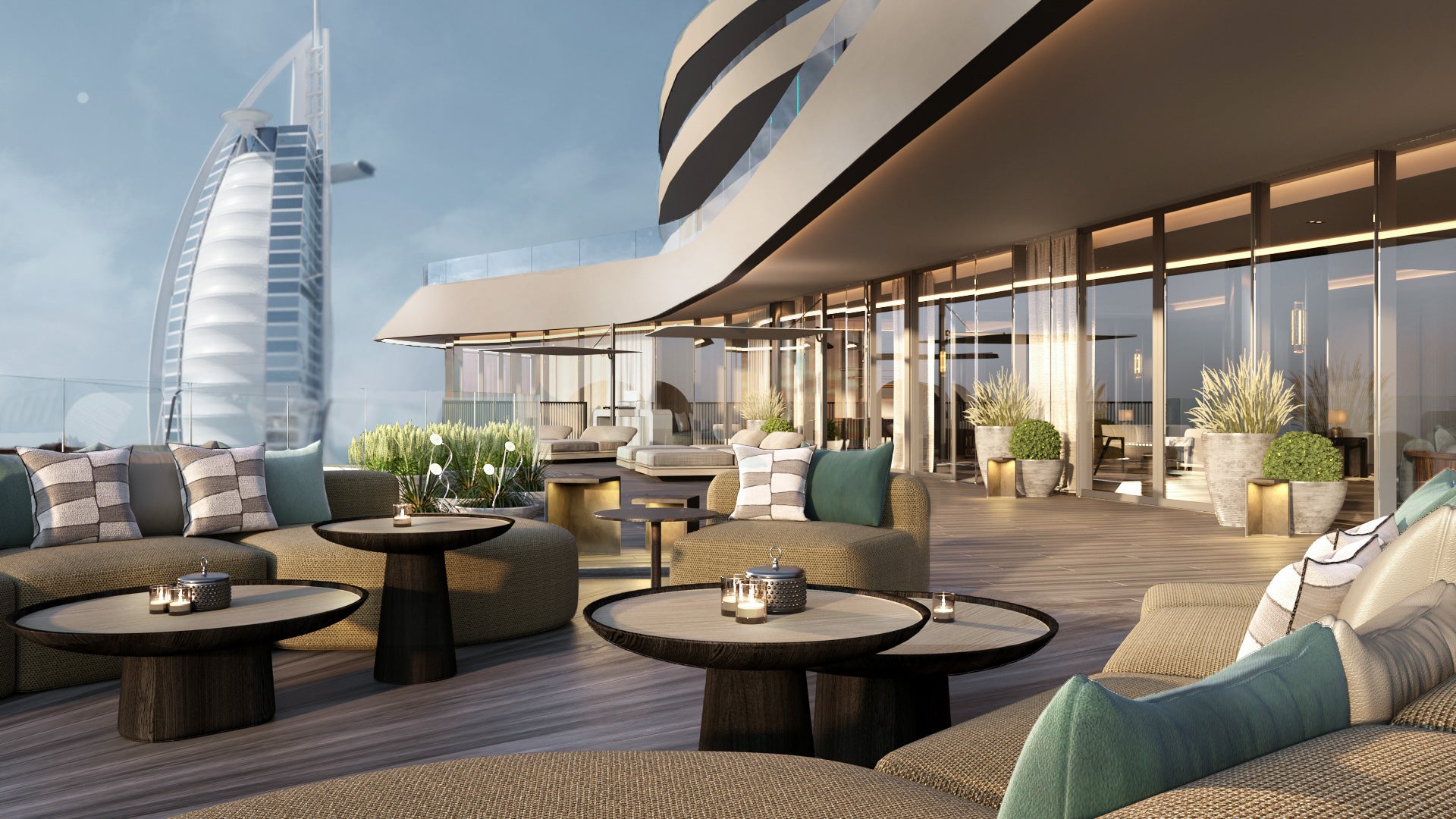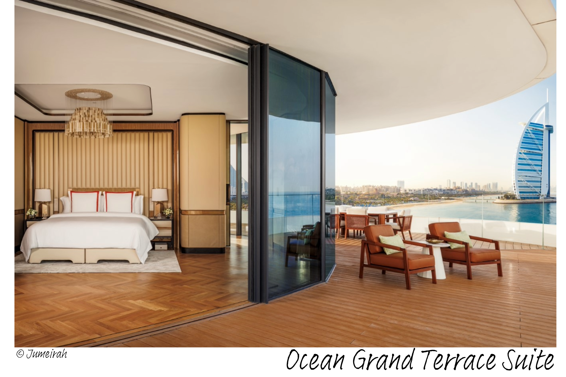 Jumeirah Marsa Al Arab sits along the Arabian Gulf, a serene retreat with sweeping views of the sea and the Dubai skyline. The atmosphere combines openness and calm, offering space to relax while staying connected to the city’s energy. The design is fresh and contemporary, inspired by the ocean and desert, creating a welcoming and refined setting.