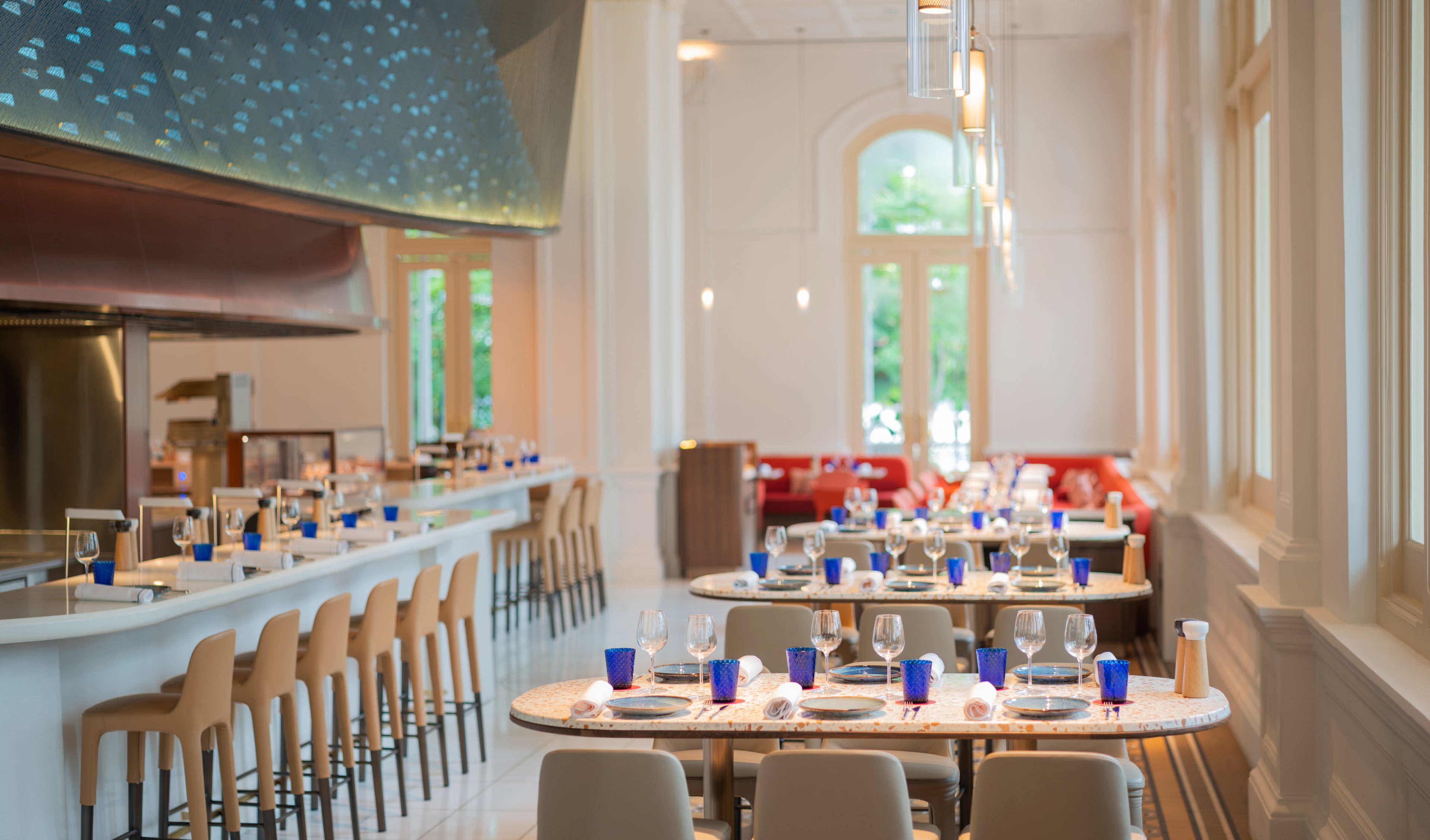 Guests have a large choice for lunch and dinner with for instance Tiffin Room where you can experience colonial-era dining with North Indian cuisine served amidst vintage decor or one of our favourite, butcher's block specialising in wood-fire cooking. The chefs prepare top-quality fish and meat dishes using American wood, complemented by Asian flavors. Do not miss of course the Long Bar, home of the famous Singapore Sling. The iconic Afternoon Tea at the Grand Lobby is a must. Savor delicate pastries, finger sandwiches, and fragrant teas.