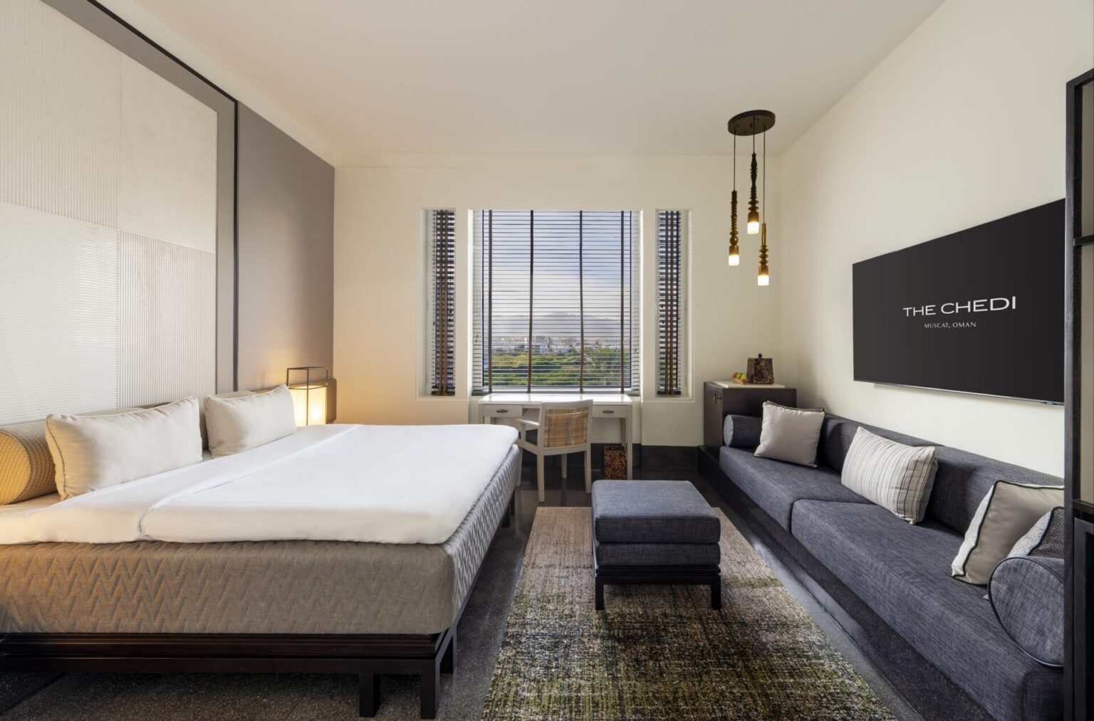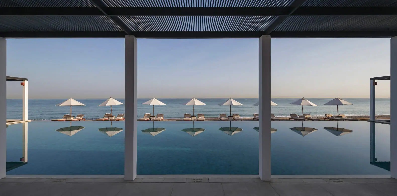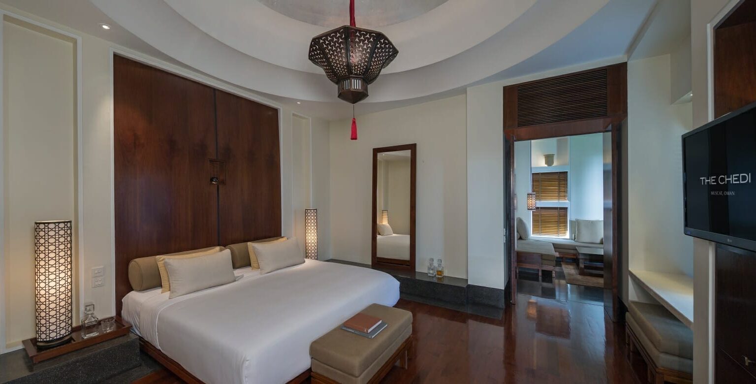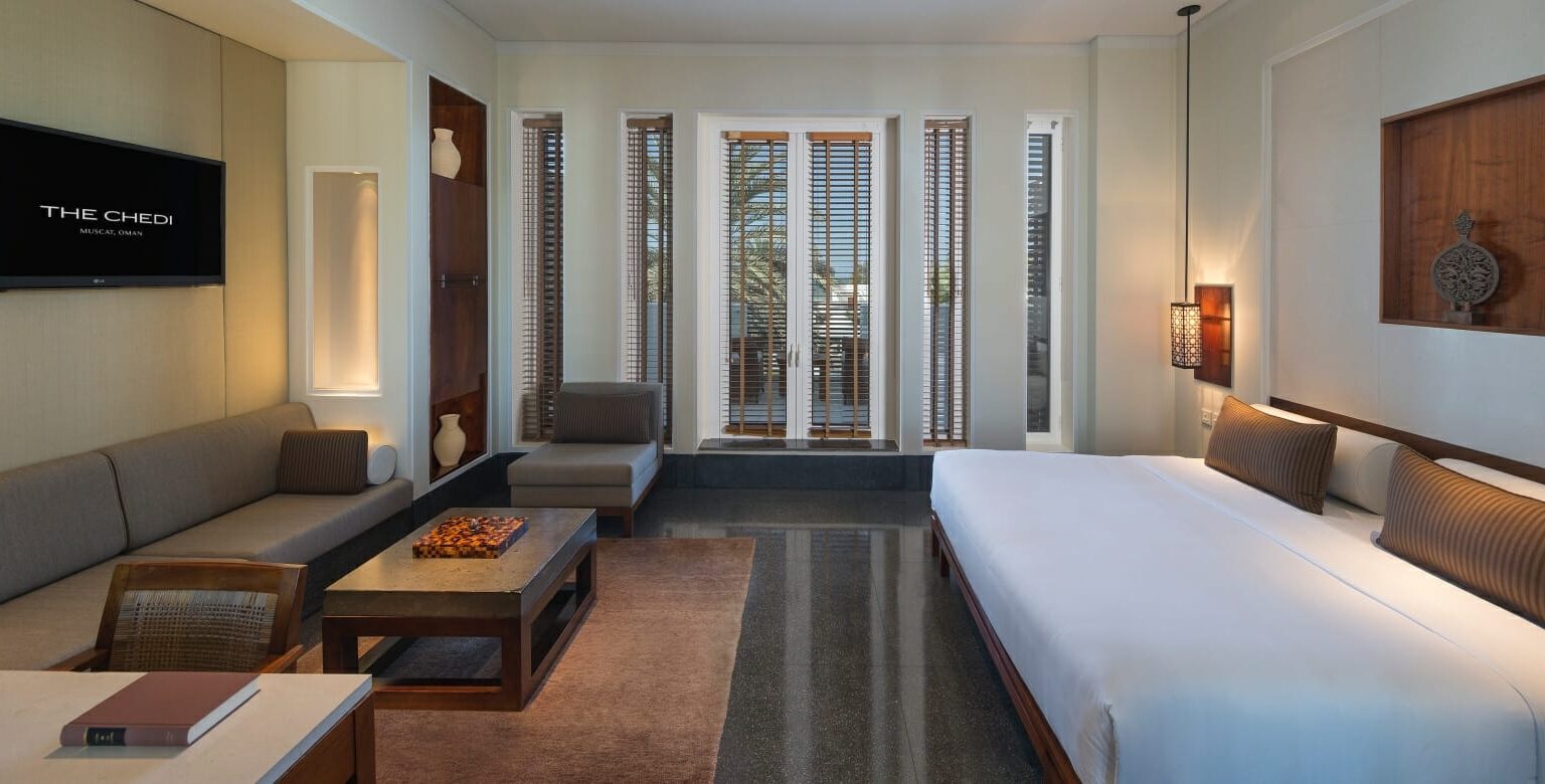 The Chedi Muscat rests gracefully along the Gulf of Oman, a serene retreat between the mountains and the sea. With its long stretches of private beach, tranquil gardens, and reflecting pools, the hotel offers a sense of stillness and space in the heart of the city. The design is inspired by traditional Omani architecture with clean lines and warm details, creating an atmosphere of quiet sophistication.