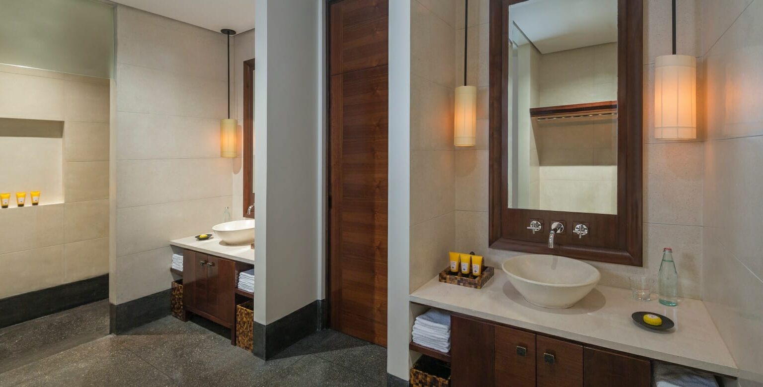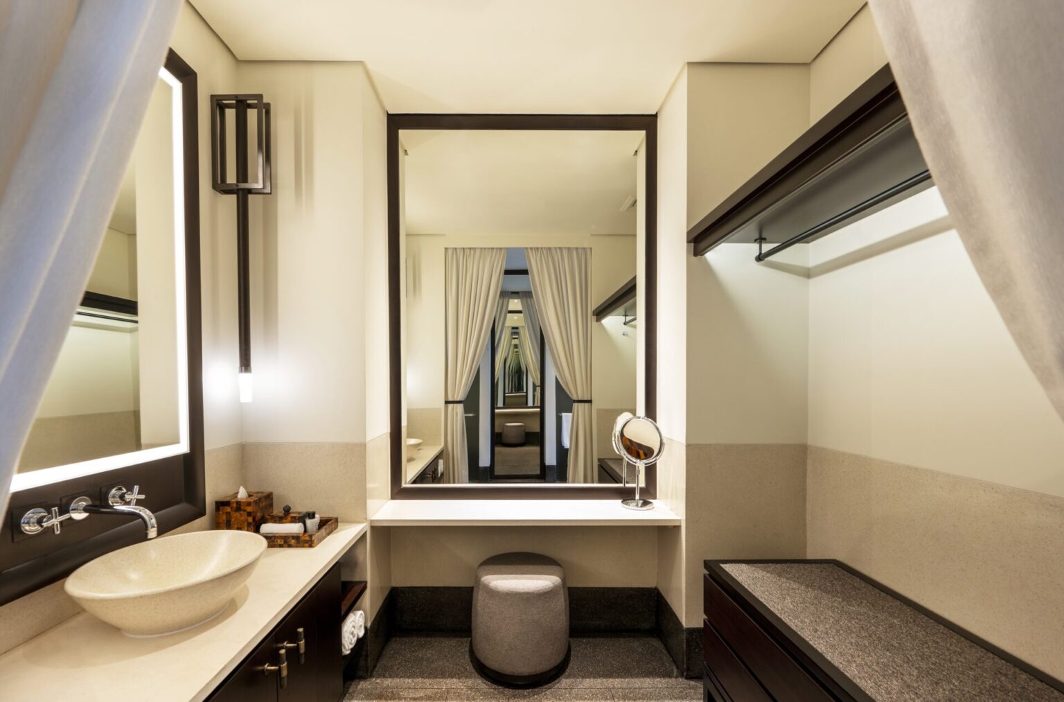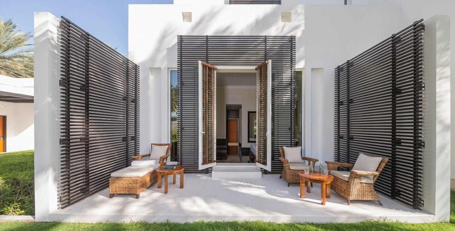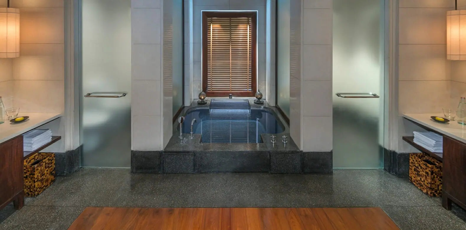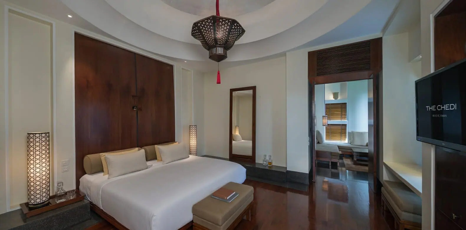 The hotel features elegant rooms and suites, many with views of the sea, gardens, or mountains. Interiors are calming and understated, with dark wood, soft tones, and thoughtful Omani touches that reflect the region’s heritage. Experiences at The Chedi Muscat focus on rest, wellness, and refined dining. The spa offers treatments rooted in Asian traditions, as well as a long indoor pool, steam rooms, and a modern fitness centre. You can also enjoy three outdoor pools, a boutique, and quiet spaces like the Cigar Lounge and Club Lounge.