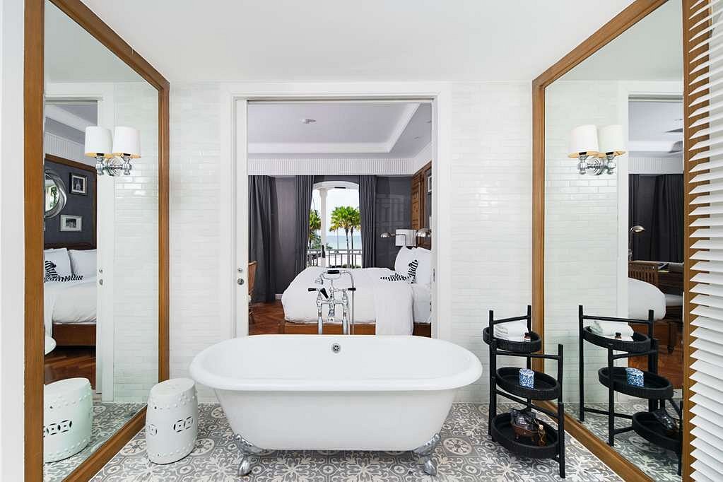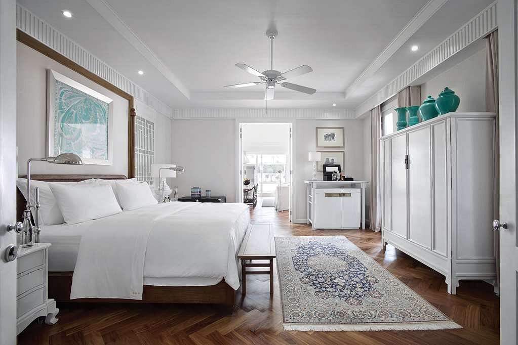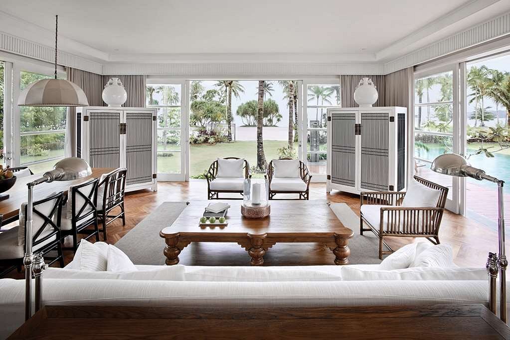 The Sanchaya, located on Indonesia’s Bintan Island, is a serene seaside estate offering an atmosphere of understated elegance and calm. Set along a long stretch of white-sand beach, the property feels intimate and private, with graceful colonial-inspired architecture surrounded by lush tropical gardens. Interiors are airy and refined, with whitewashed walls, soft fabrics, and subtle art pieces that evoke the charm of a private residence.