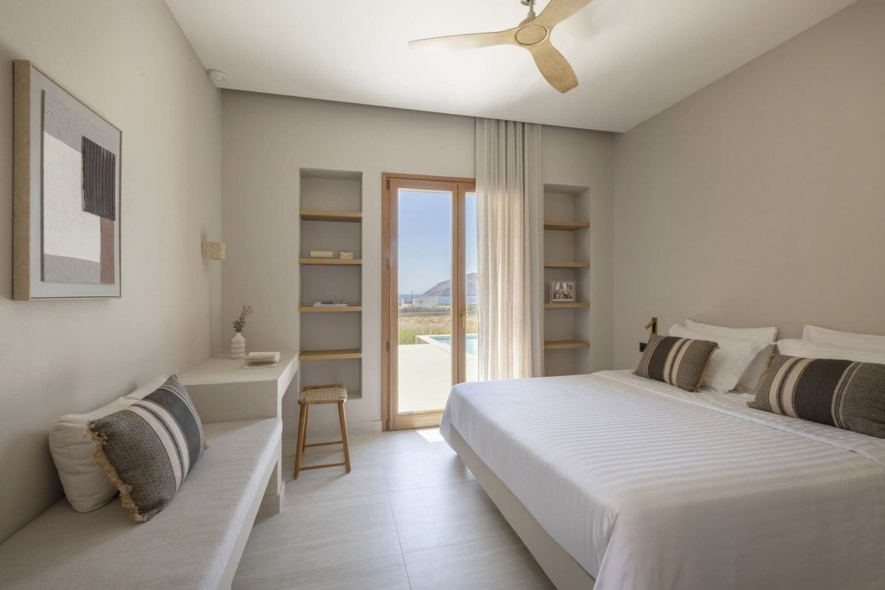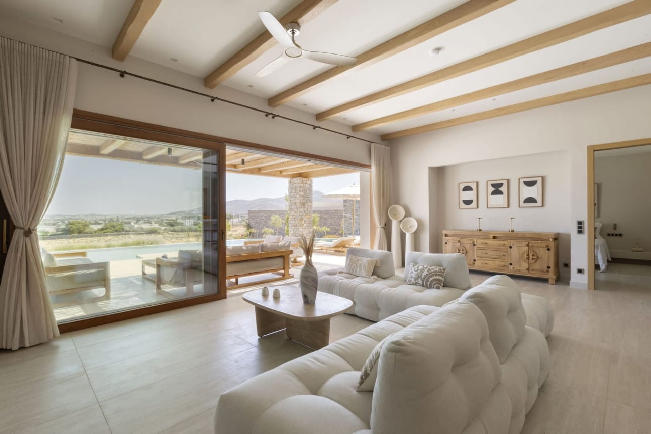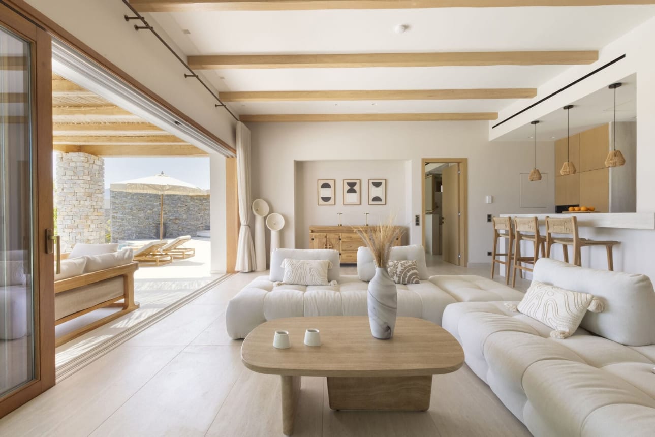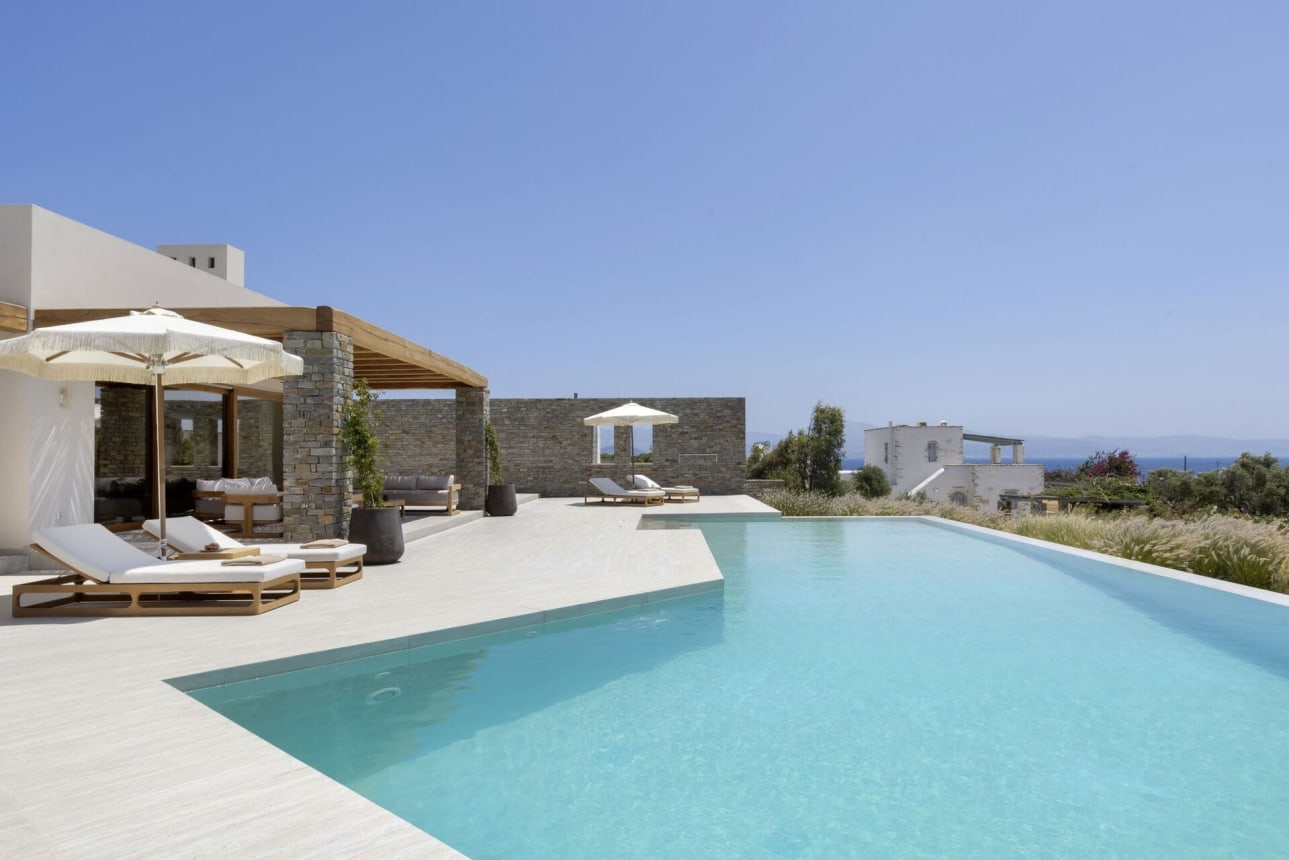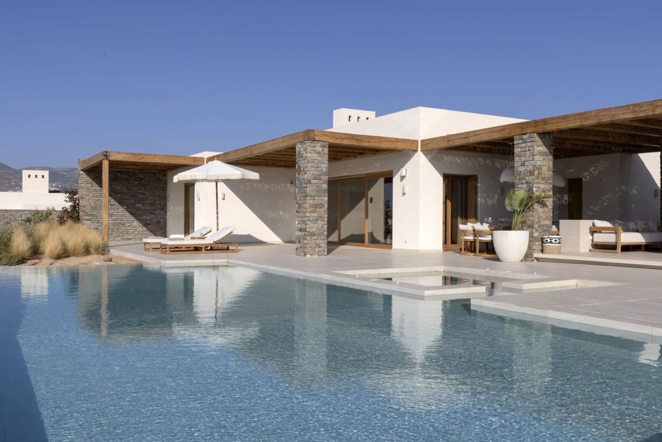 Nestled above the northeastern coast of Paros in the quiet Isterni area, Treis Villas brings together three beautifully designed homes offering both privacy and shared space, with contemporary style and far-reaching Aegean views. Each villa is bright and minimal, allowing the surrounding landscape to take centre stage.