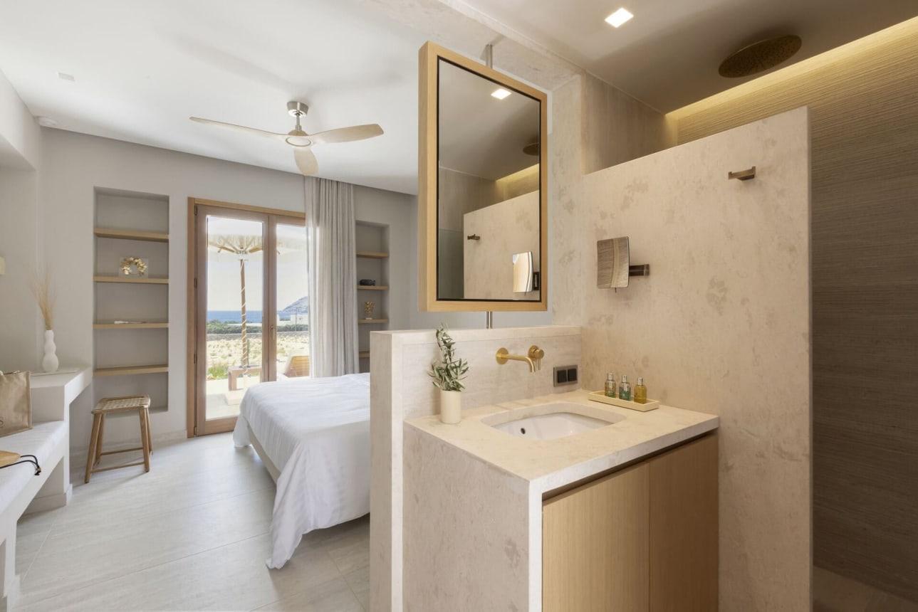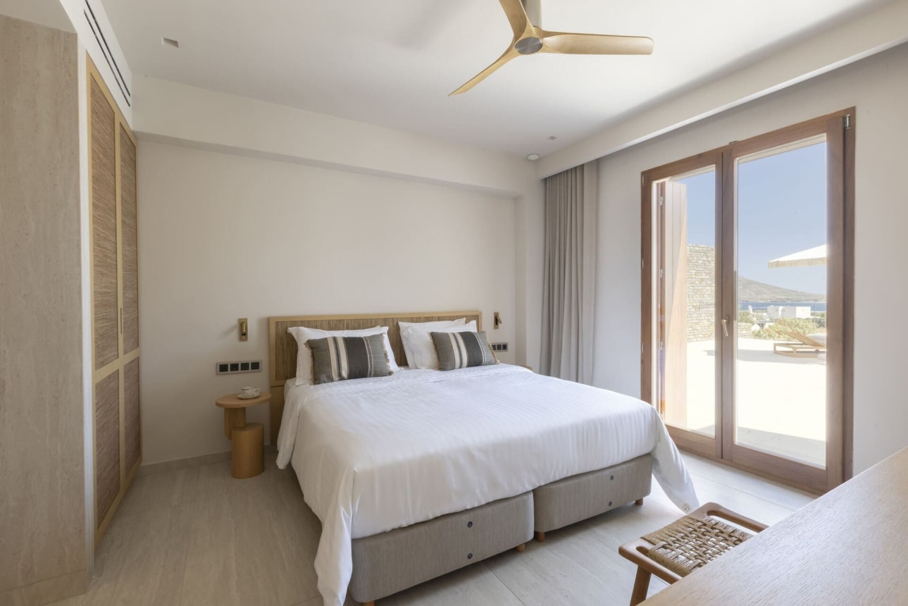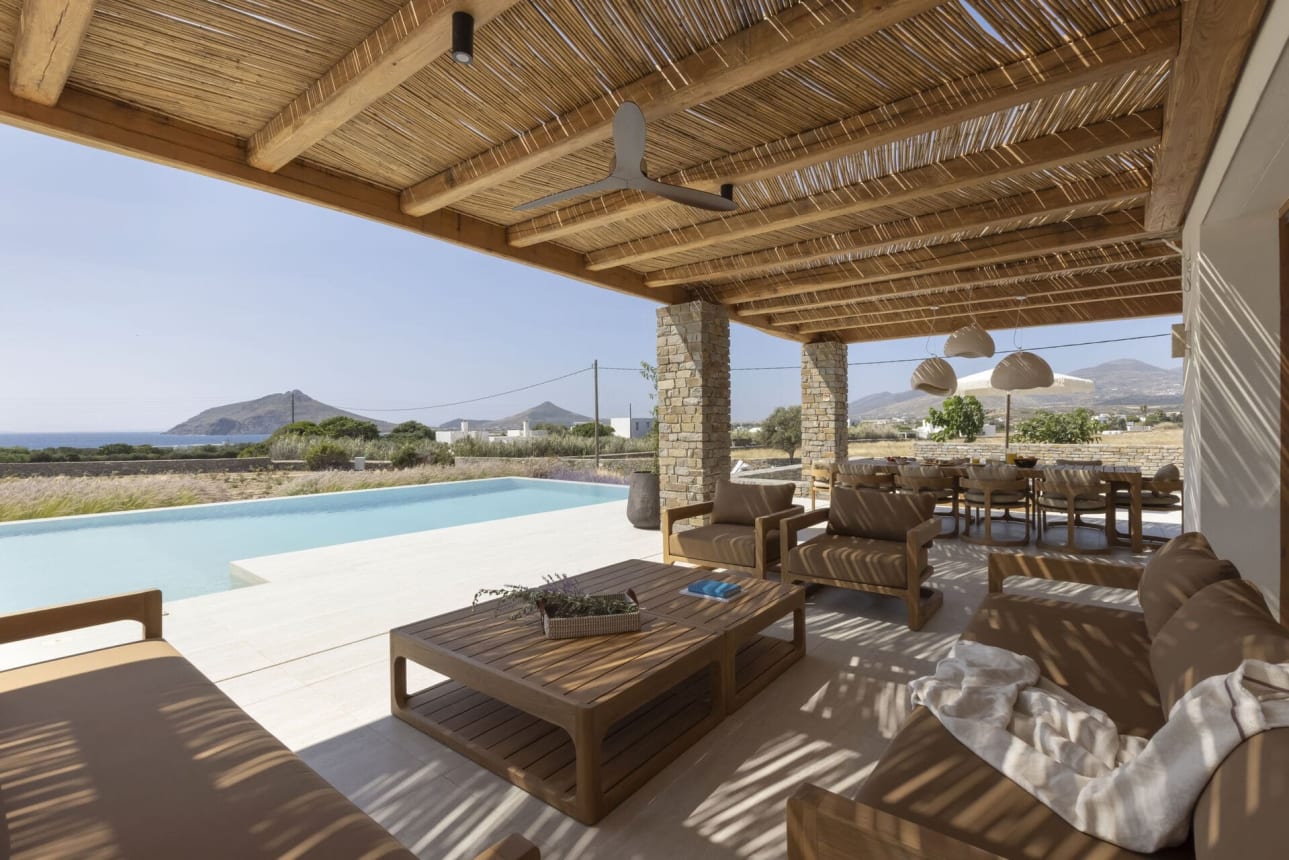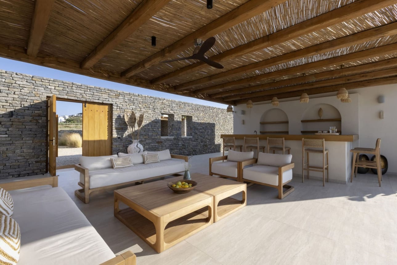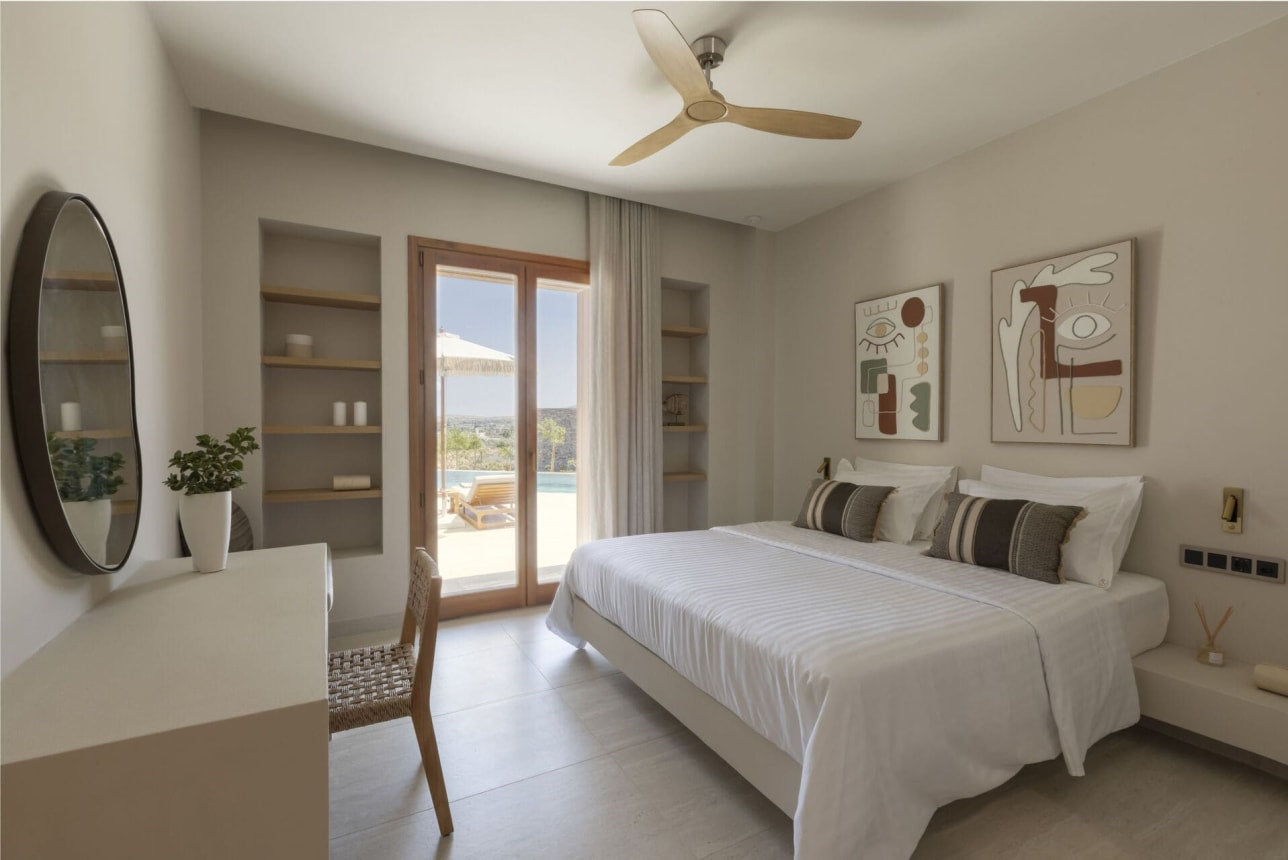 Nestled above the northeastern coast of Paros in the quiet Isterni area, Treis Villas brings together three beautifully designed homes offering both privacy and shared space, with contemporary style and far-reaching Aegean views. Each villa is bright and minimal, allowing the surrounding landscape to take centre stage.