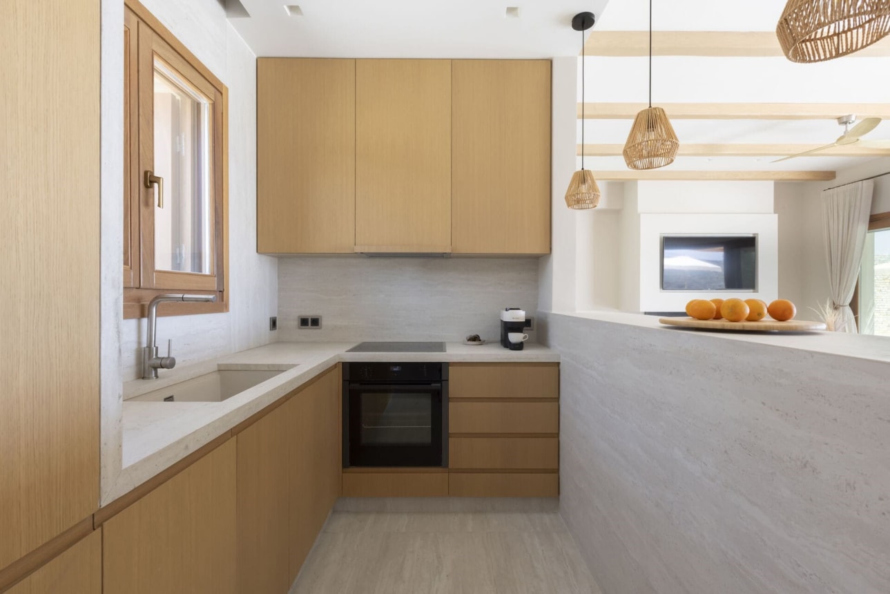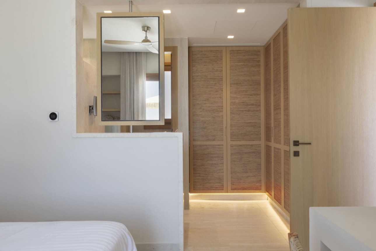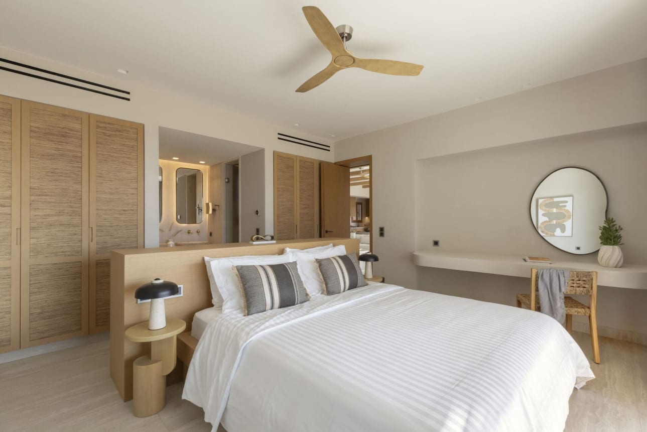 • Calm, modern interiors inspired by Cycladic aesthetics, featuring whitewashed walls, clean lines, and natural materials