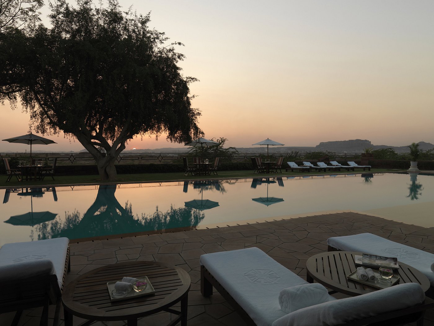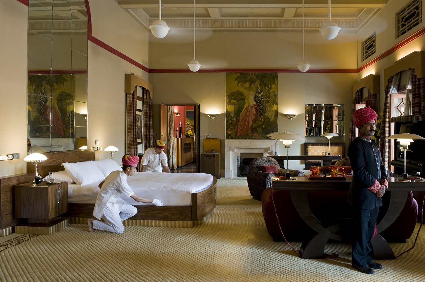 The rooms and suites reflect princely refinement: noble furnishings, rich fabrics, and many offering views of Mehrangarh Fort or the palace gardens. The service is attentive, with hospitality fit for royalty — you truly feel like a modern monarch in a historic setting.
