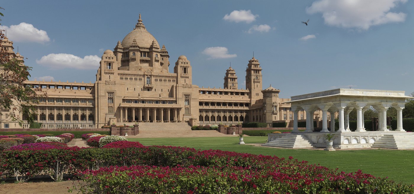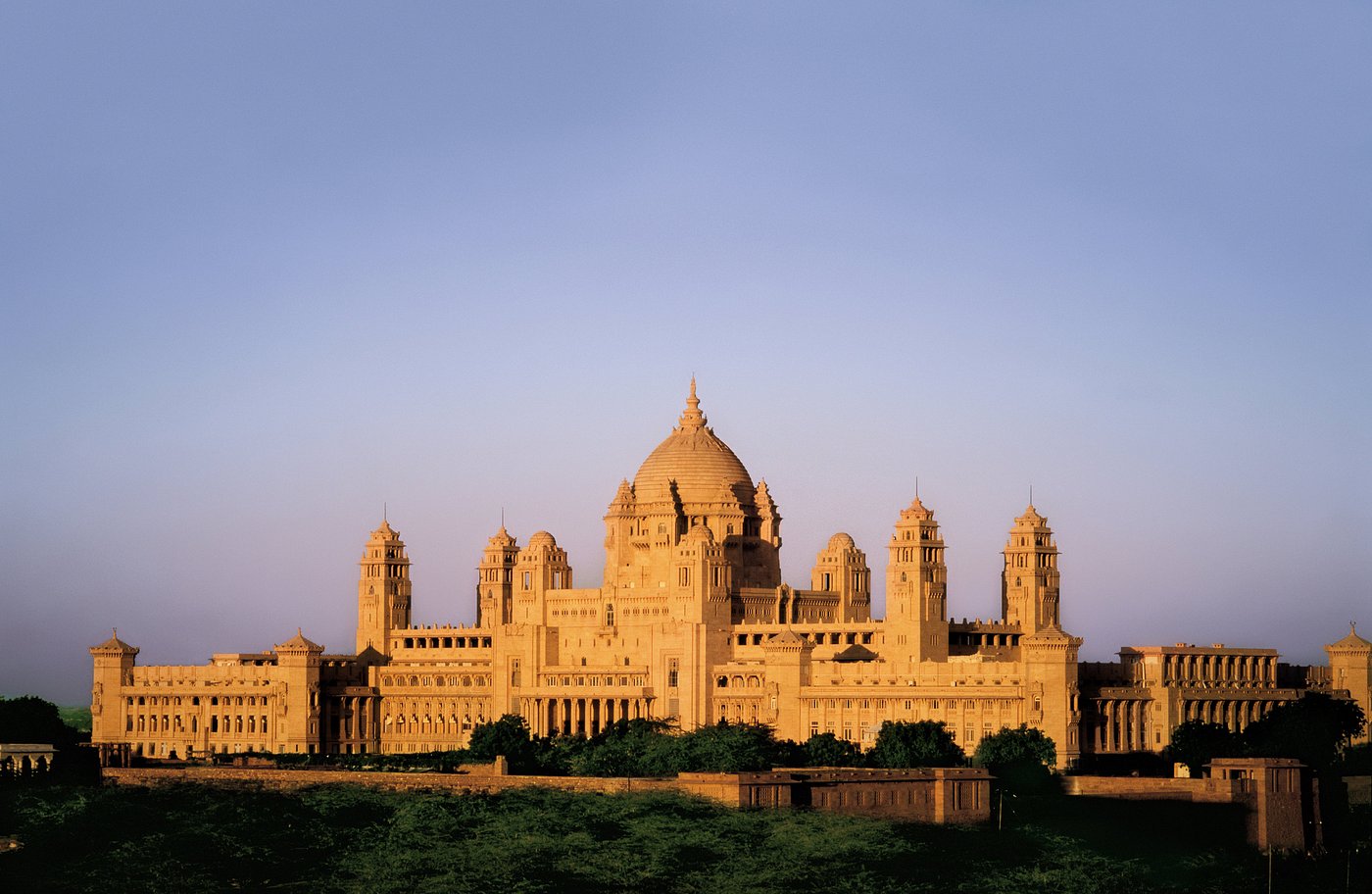 Umaid Bhawan Palace in Jodhpur is an iconic golden-sandstone palace perched on Chittar Hill. The building blends royal grandeur with Art Deco elegance, featuring impressive domes, lush gardens, and spectacular views of the “Blue City.”