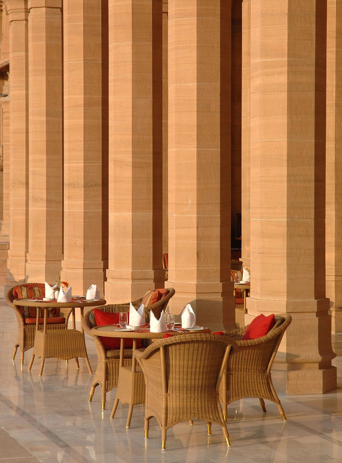 • Pillars An elegant open-air restaurant offering beautiful views of the palace gardens and Jodhpur’s landscape. Serving Indian and Continental dishes, it’s perfect for relaxed breakfasts, afternoon teas, and serene sunset dinners